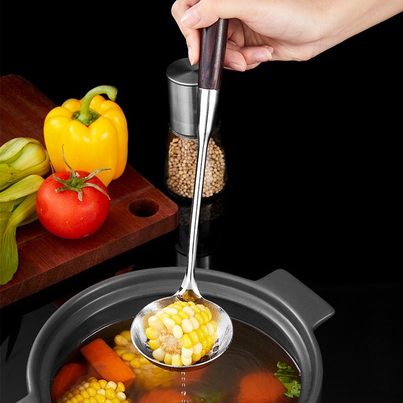 304 Stainless Steel Soup Shell Soup Strainer Household Soup Spoon Kitchen Long Handle Hot Pot Spoon Strainer316 High Value Drinking Soup Spoon