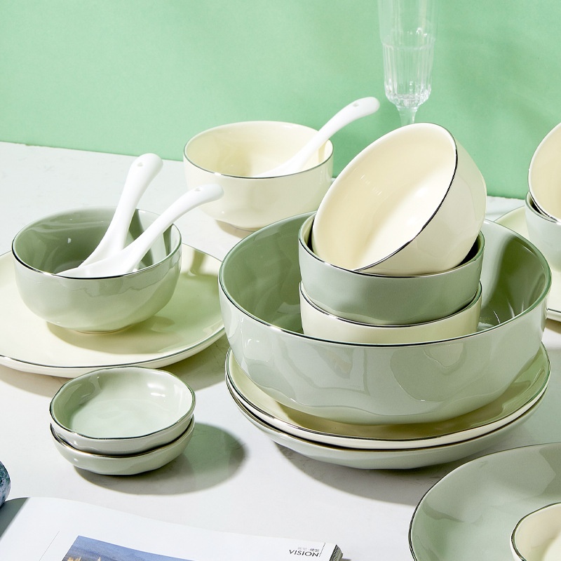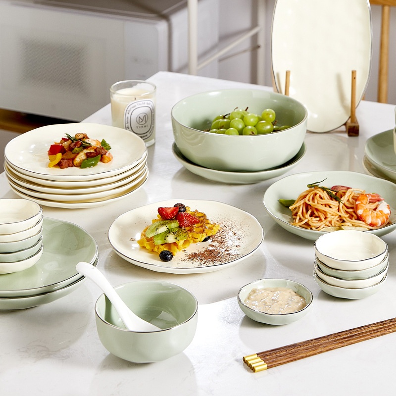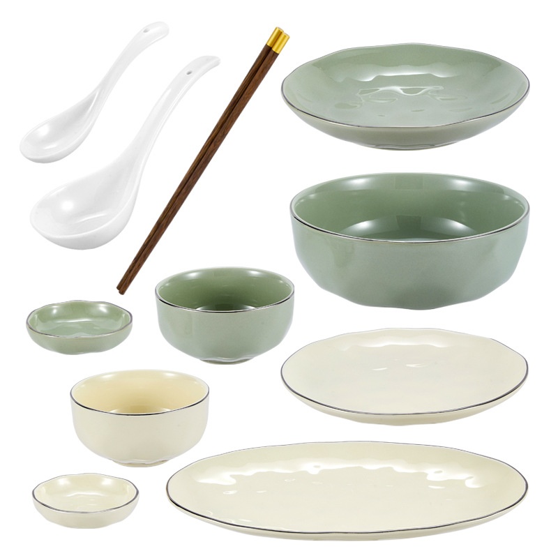 Japanese Style Ceramic Tableware Set Household Bowls And Plates Underglaze Color Bowls Simple Bowls And Plates Spoons Plates Dishes Chopsticks