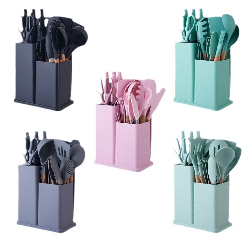 Silicone Kitchen Knife Set19-piece Set Wooden Handle Silicone Kitchen Combination Knife And Scissors Kitchen Knife Set