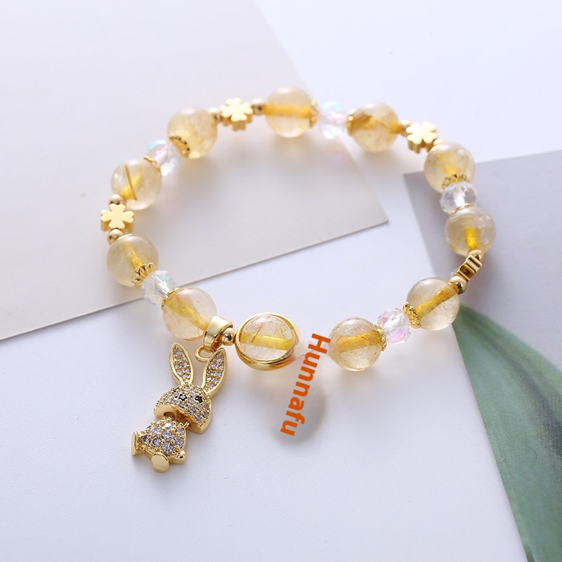Natural Golden Crystal Bracelet For Fortune And Luck Fashion Niche Luxury Light Luxury Girl Bestie Rabbit Bracelet