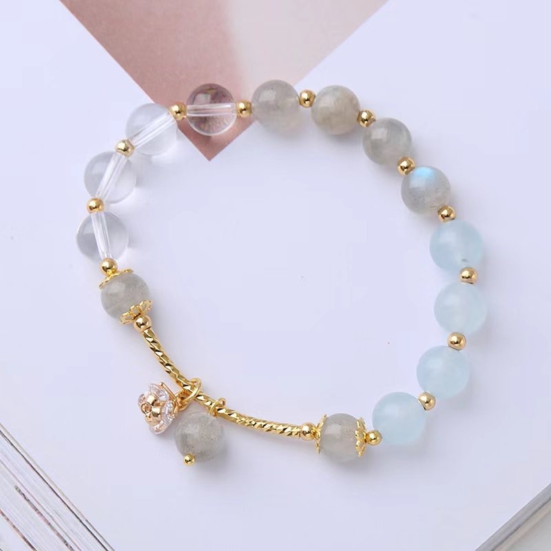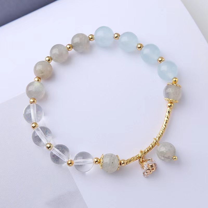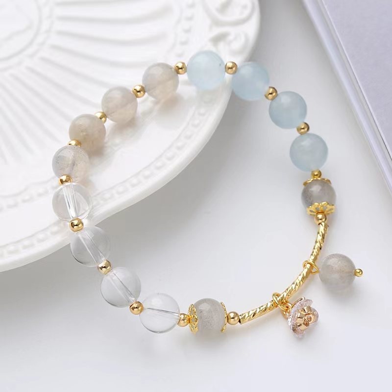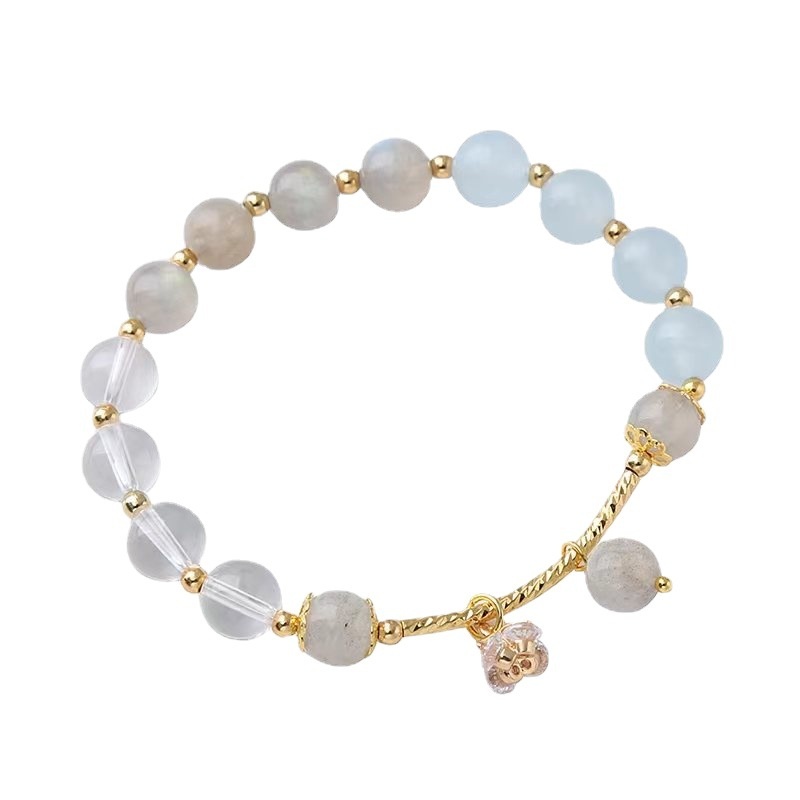 Natural Gypsum Stone Round Bead Multi-treasure Bracelet Plus Moonstone White Crystal Crystal Transparent Specification8mm Japanese And Korean