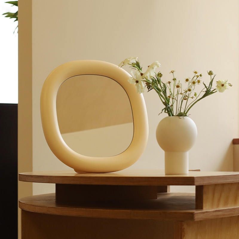 MUIDBubble Mirror Desktop Makeup Mirror Bedside Ornaments Home Cream Style Desktop Wall-mounted Mirror