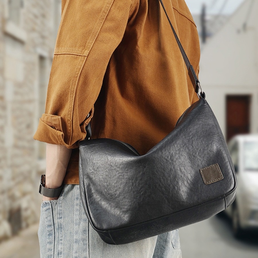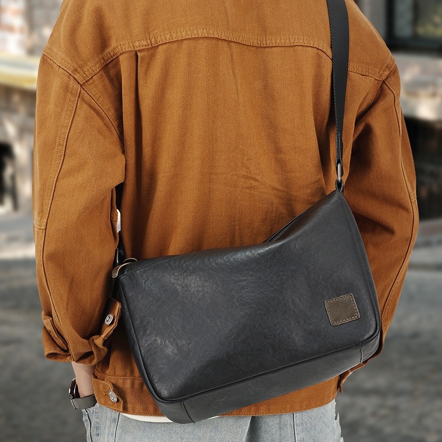Motorcycle Bag Men's First Layer Cowhide Large Capacity Shoulder Bag Men's Bag Genuine Leather Men's High-end Messenger Bag Casual Fashion