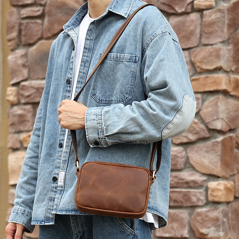 Men's Genuine Leather Shoulder Bag Men's Bag Street Fashion Shoulder Backpack First Layer Cowhide Bag Men's Messenger Bag