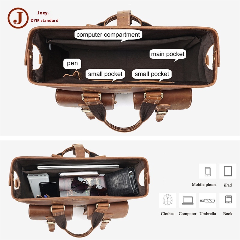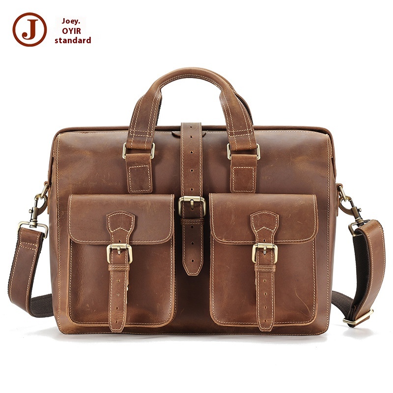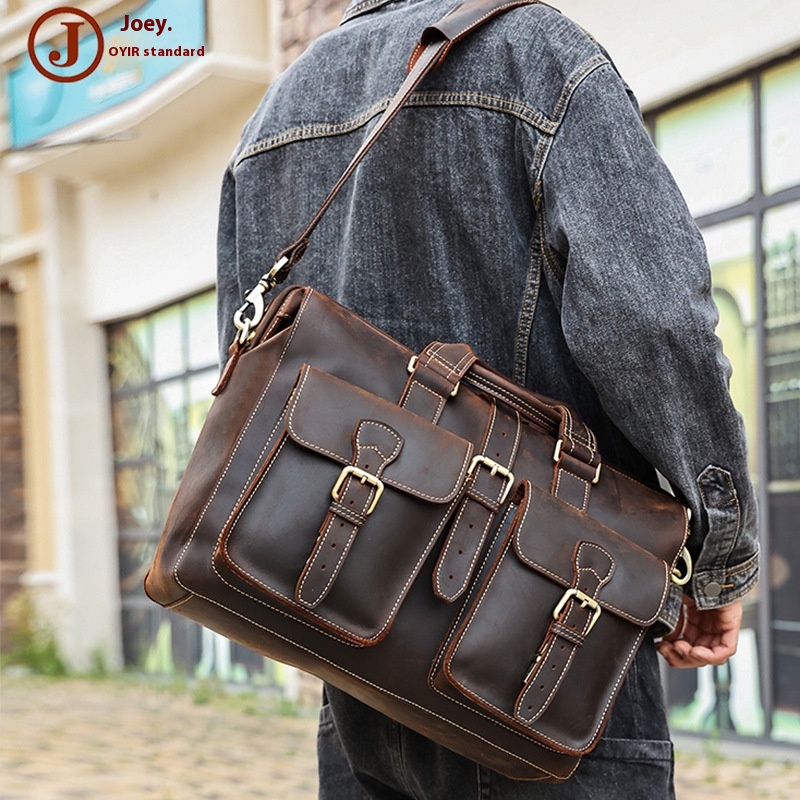 Genuine Leather Briefcase Men's Bag Large Capacity15.6 Inch Single Shoulder Computer Bag Crazy Horse Leather Retro Handbag Men's Business Bag