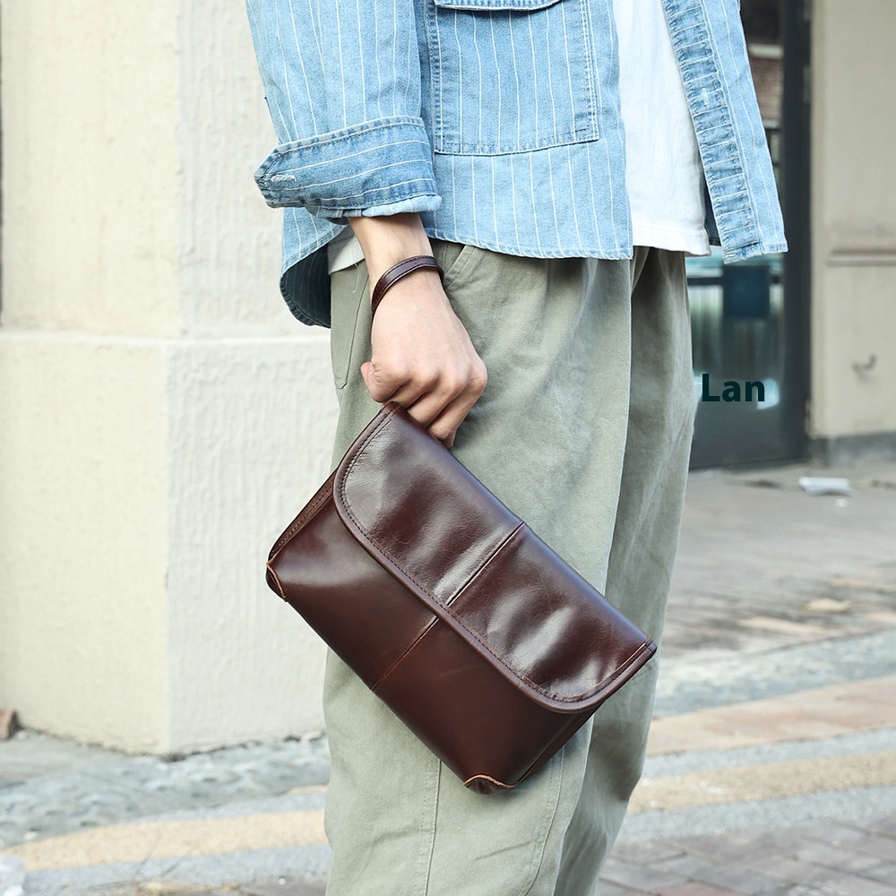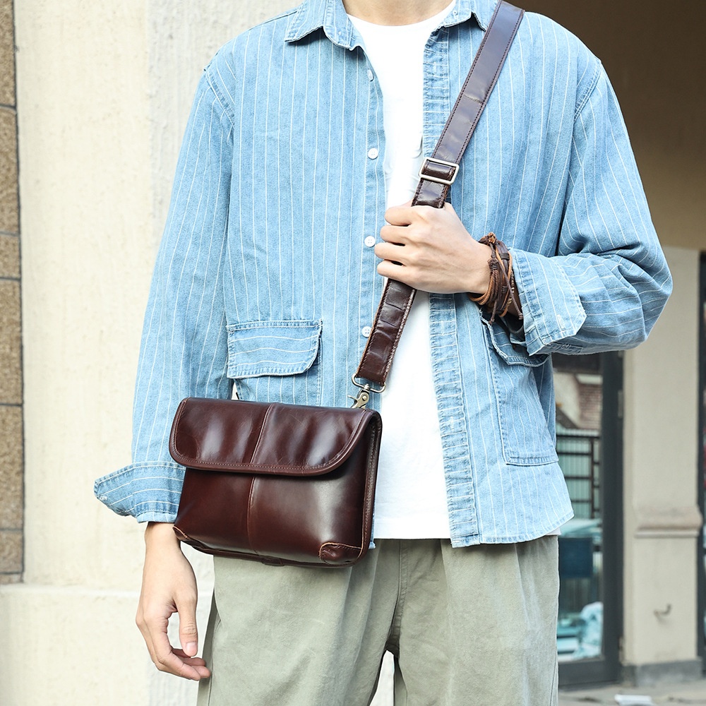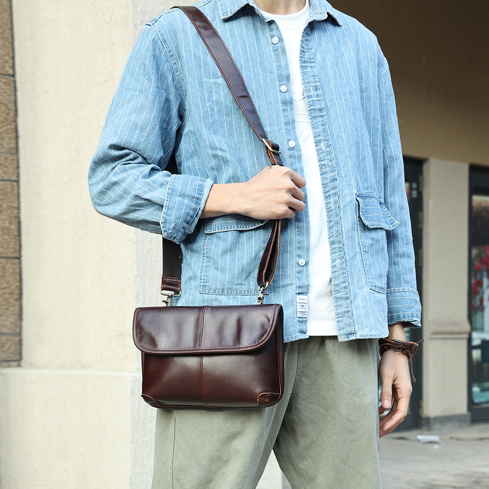 Genuine Leather Men's Messenger Bag Retro Horizontal Shoulder Bag High-end Versatile Simple Men's Shoulder Messenger Bag