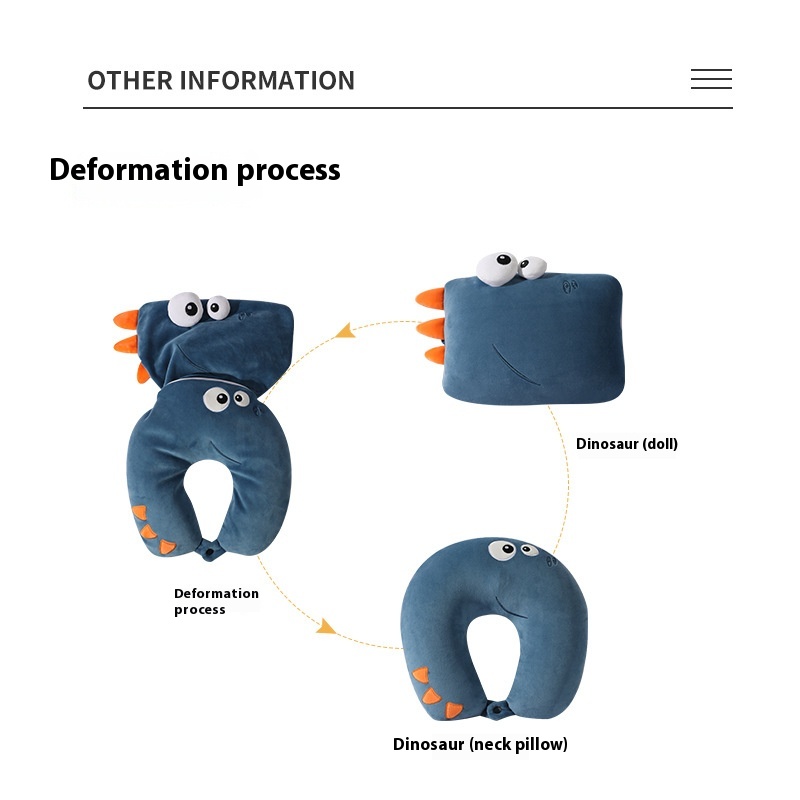 Cartoon Dinosaur U-shaped Pillow Foam Particle Deformation Pillow Car Headrest Multifunctional Pillow Creative Neck Pillow