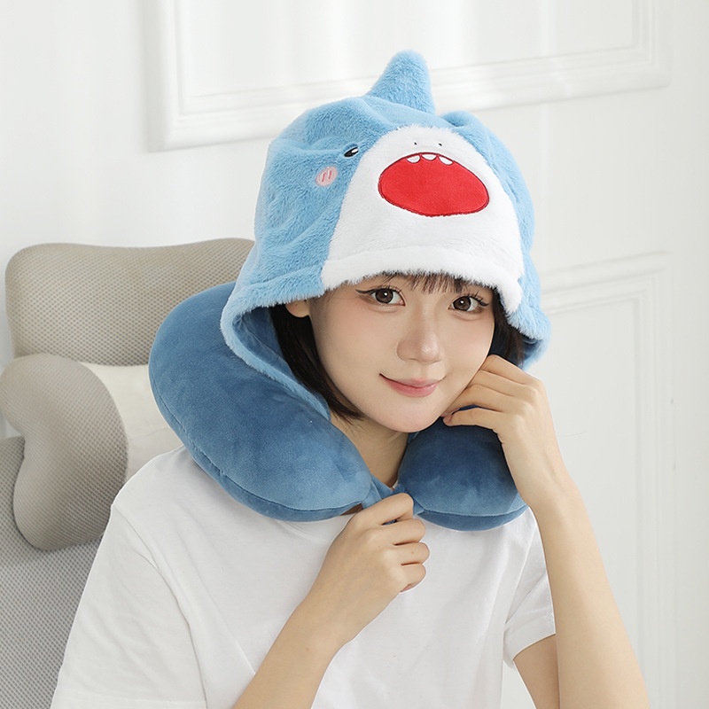 Cartoon Hooded U-shaped Pillow Plush Hooded Neck Pillow Travel Portable Neck Pillow Soft Office Nap Pillow