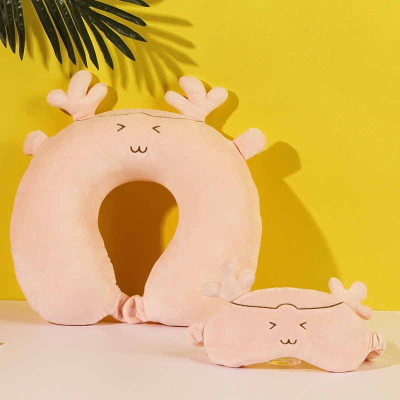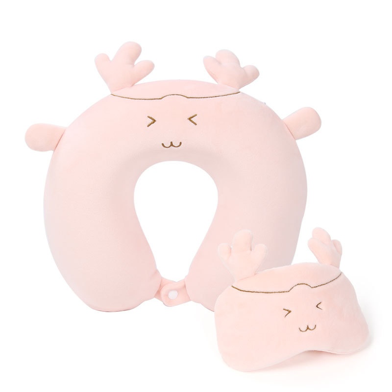 Cartoon U-shaped Pillow Cute Pillow With Deer Shape And Eye Mask Set Removable And Washable