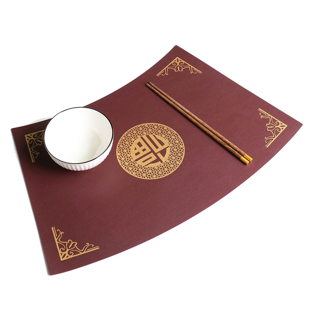 Chinese Style Household Leather Placemat Fan-shaped Hotel Restaurant Chinese Style Retro Oil-proof Heatulation Table Mat