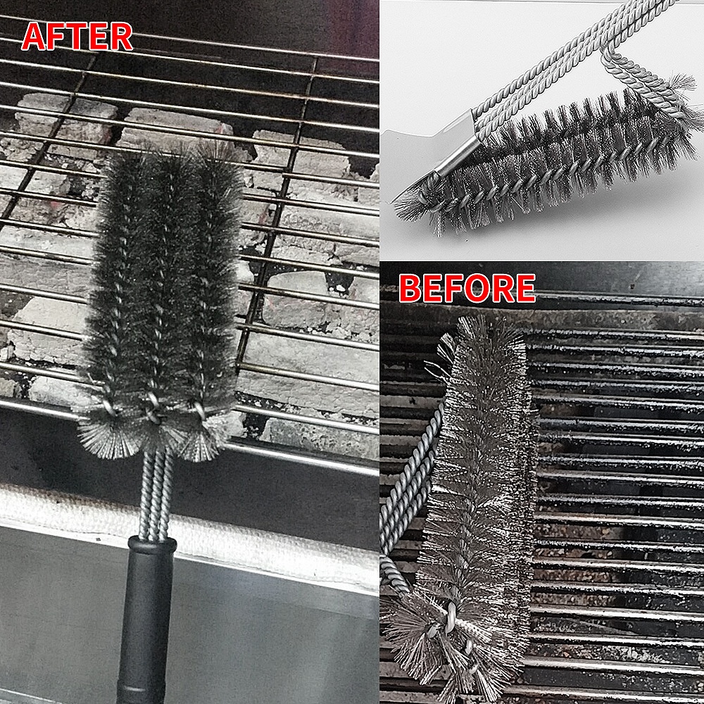 SDirectly Stainless Steel Barbecue Cleaning Brush Bbq Cleaning Tool Three-head Barbecue Brush Oven Grill Wire Brush