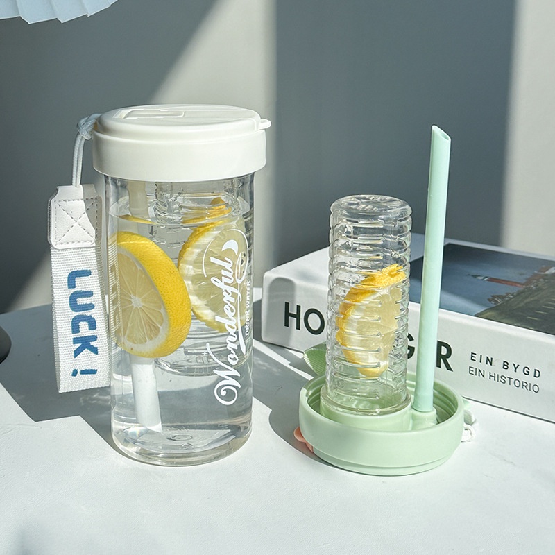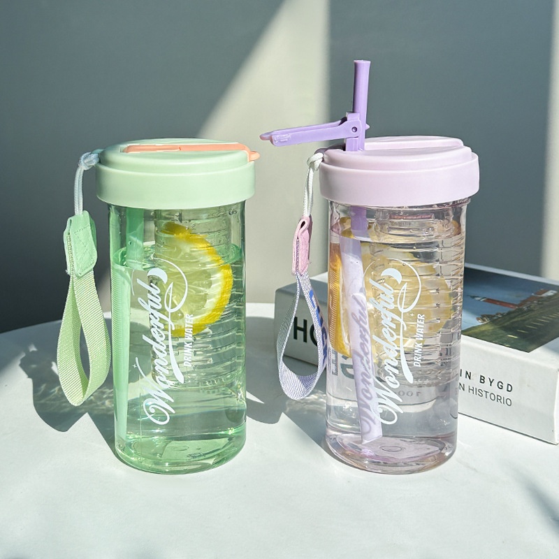 Summer Flower Tea Cup For Girls With High Appearance Value Rope Tea Cup Student Portable Straw Cup Plastic High Temperature Resistant