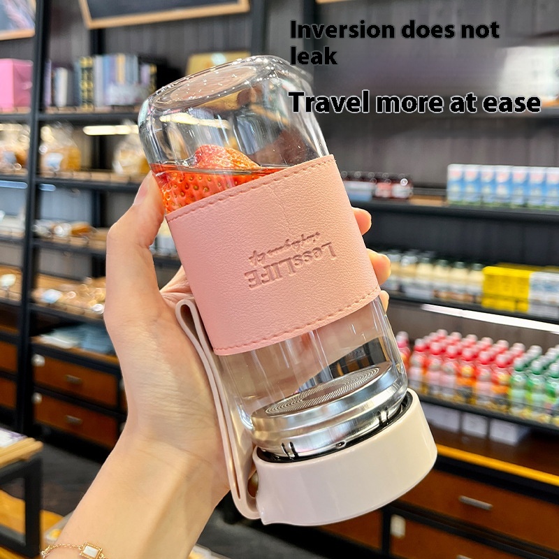 Korean Style Fresh Heat-resistant Glass Cup For Women With Rope Portable Tea Strainer For Brewing Flower Tea Cup For Men Business Simple Water Cup
