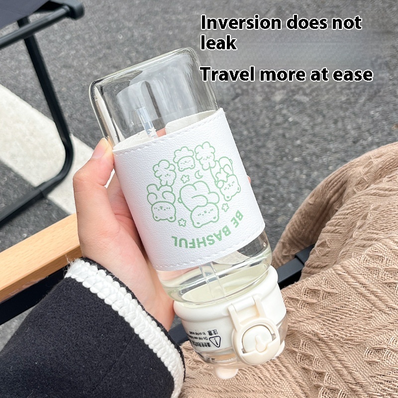 Water Cup Female Glass Cup With Straw Simple Fresh Forest Portable Summer Cute Student Girl Heart Cup