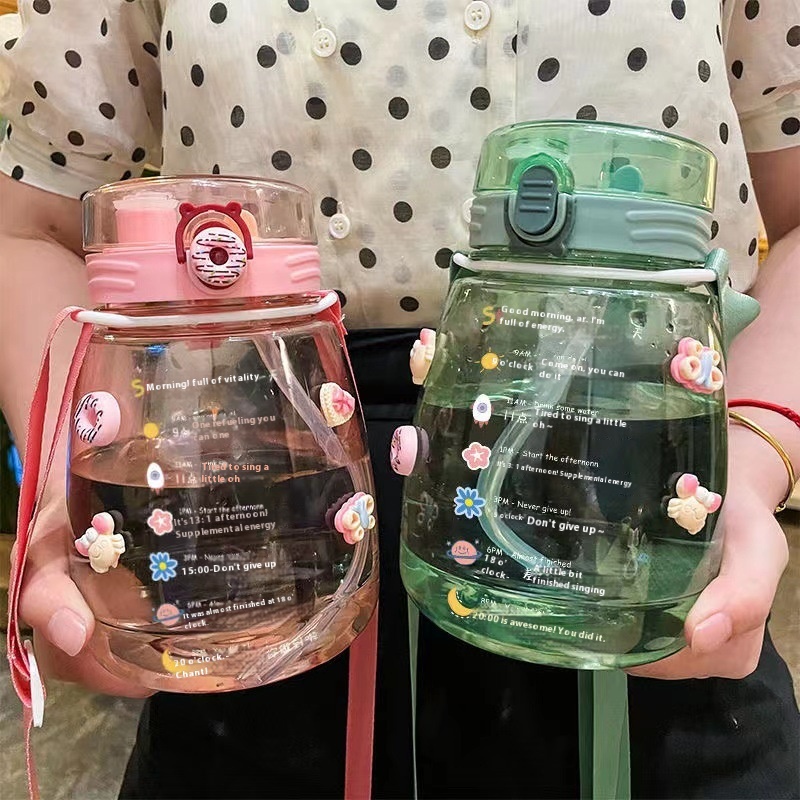 High-value Internet Celebrity Straw Water Cup Female Student Large Capacity Cute Portable Sports Water Bottle Water Cup Bottle Summer Super Large