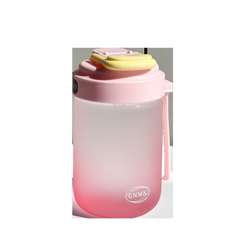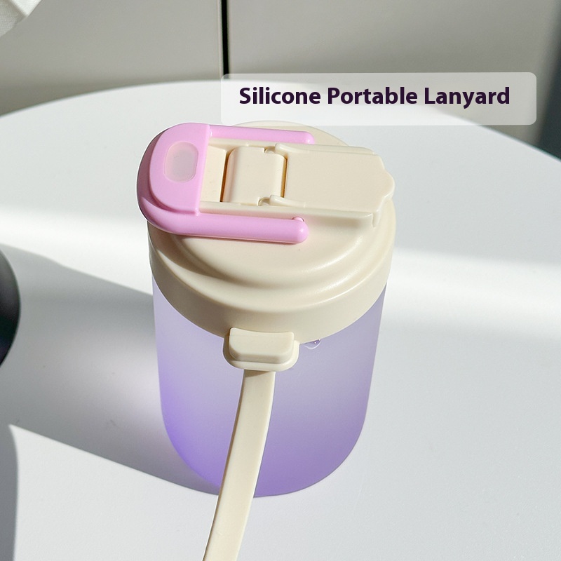 Girls'Gradient Glass Water Cup Gradient Color High Borosilicate Glass Cup With Straw High Temperature Resistant Portable Student Double Drinking Cup