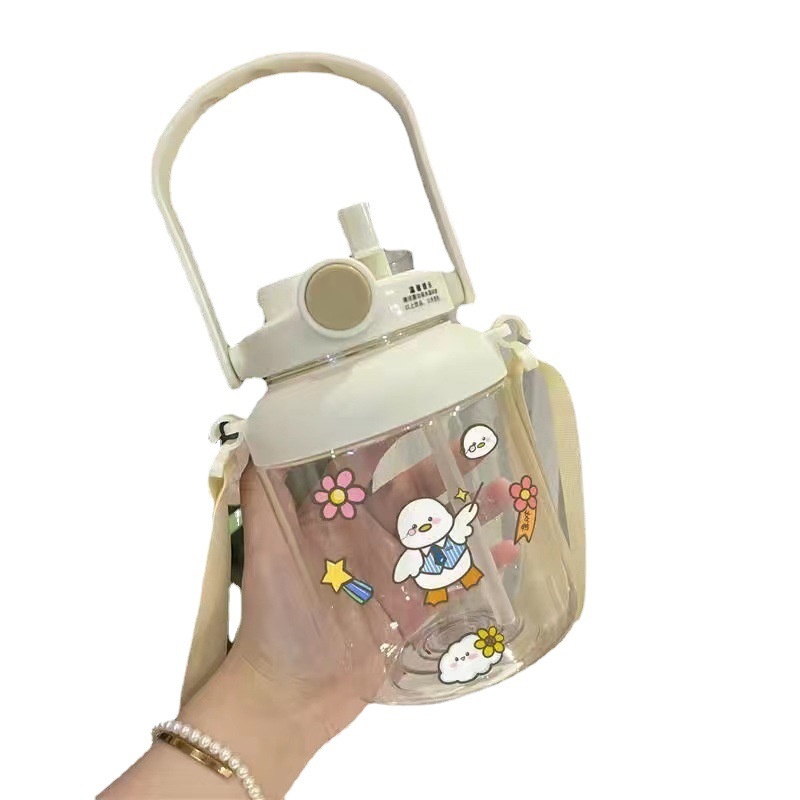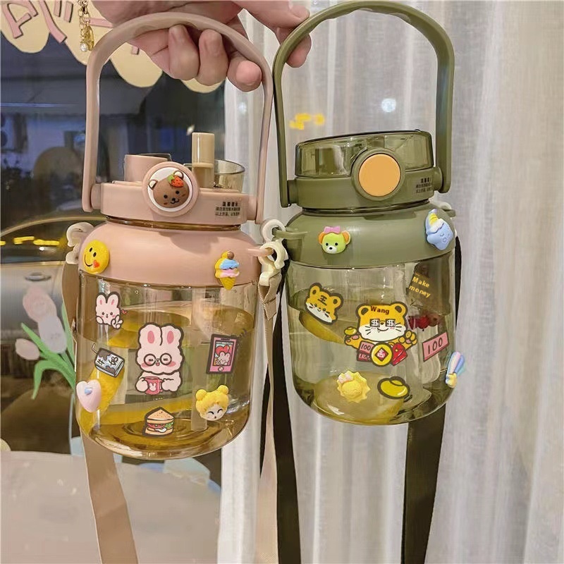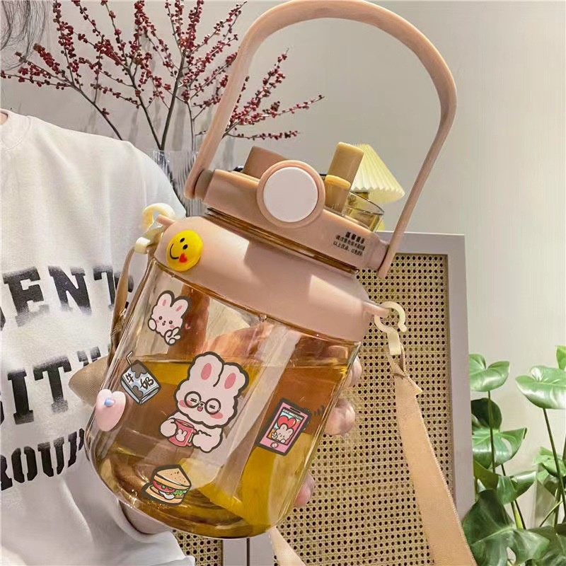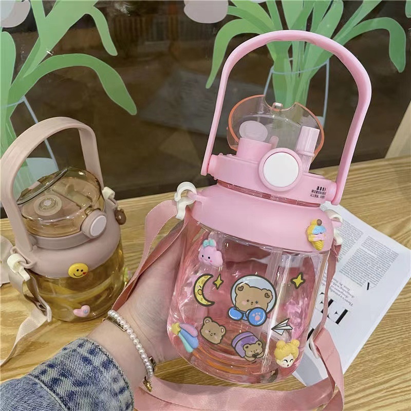 Cute Large Capacity Water Cup For Women With High Value Double Drink With Straw Big Belly Cup Plastic Portable Student Kettle