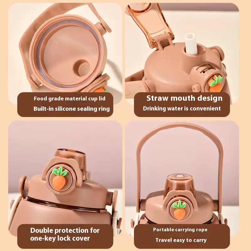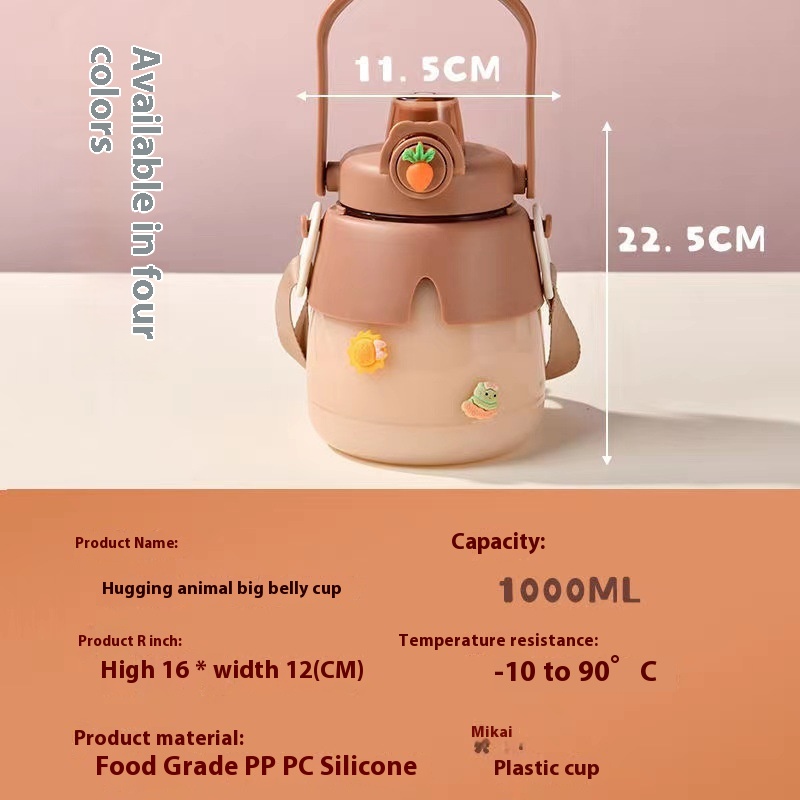Large Capacity Plastic Water Cup Internet Celebrity High Value Double Drinking Big Belly Cup Creative Gift Children Student Portable Kettle