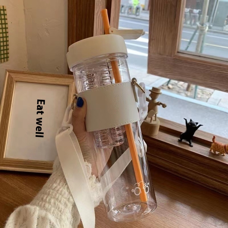 Plastic Water Cup For Girls With High Value Simple Tea And Water Separation With Tea Septum Shake Flower Tea Straw Water Cup