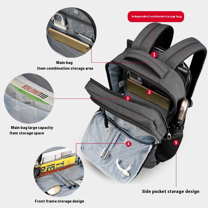 Tigernu Business Commuter Men's Backpack Decompression Double Shoulder Strap Anti-theft Laptop Backpack Waterproof And Wear-resistant