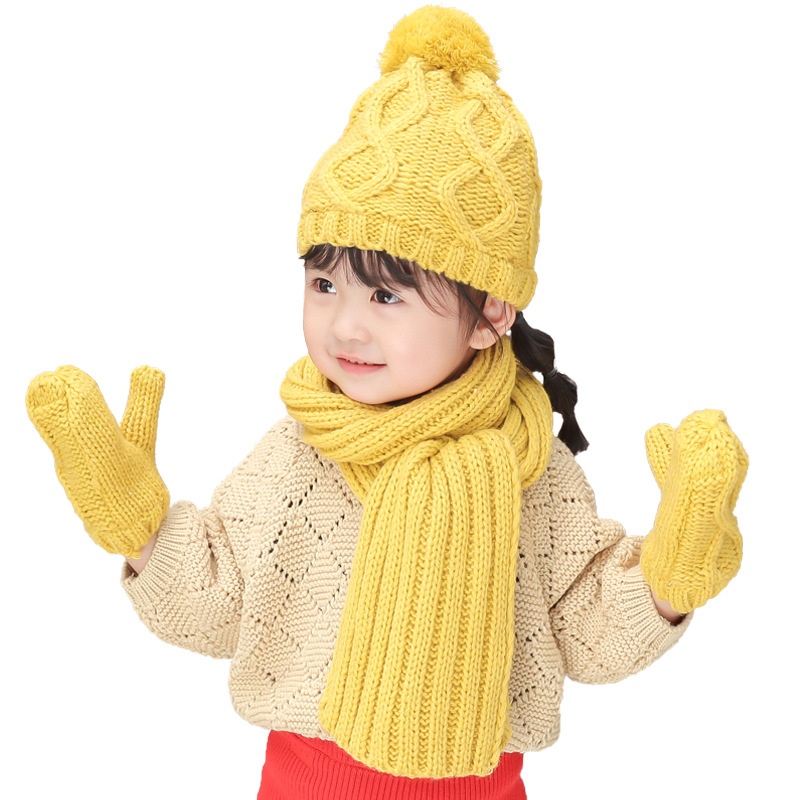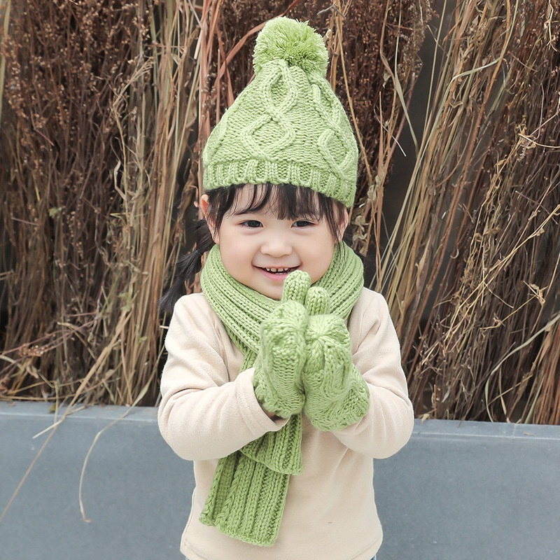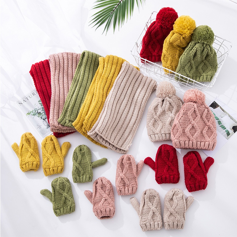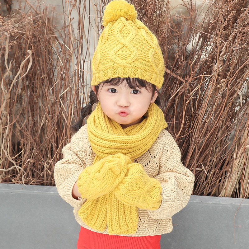 [ Little Pig Ouch] Three-piece Children's Suit Knitted Wool Scarf Hat Gloves Children Keep Warm In Winter