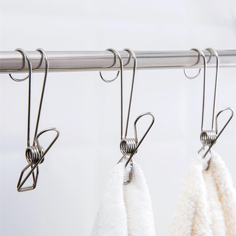 Stainless Steel Small Clip Hook With Hanging Bathroom Multifunctional Clothes Windproof Clothes Rack Home Storage Clothespin