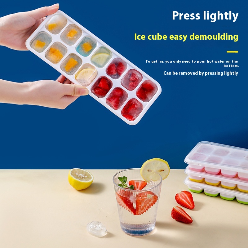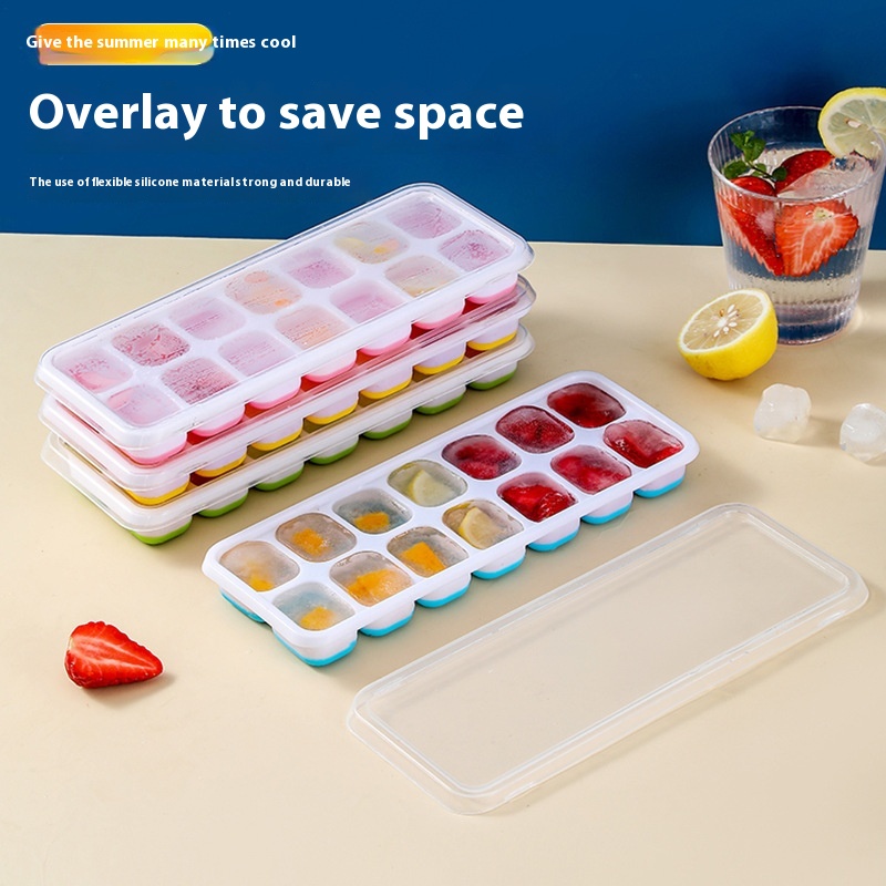 FADDetection Square Silicone14 Ice Tray With Lid Soft Bottom Ice Cream Ice Cube Mold DIY