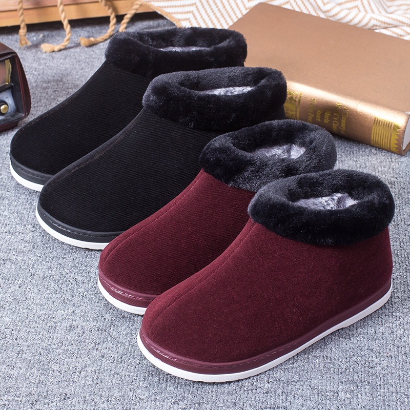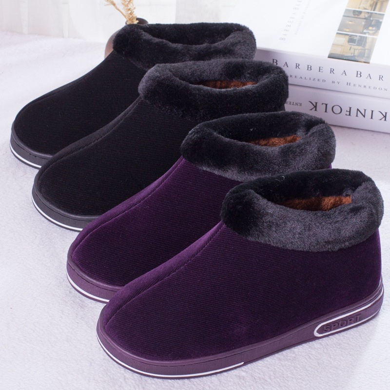 Middle-aged And Elderly Women's Bag-heeled Cotton Shoes, Indoor And Outdoor, Velvet Thick-soled Home Handmade Cotton Shoes, Corduroy Cotton Slippers, Winter