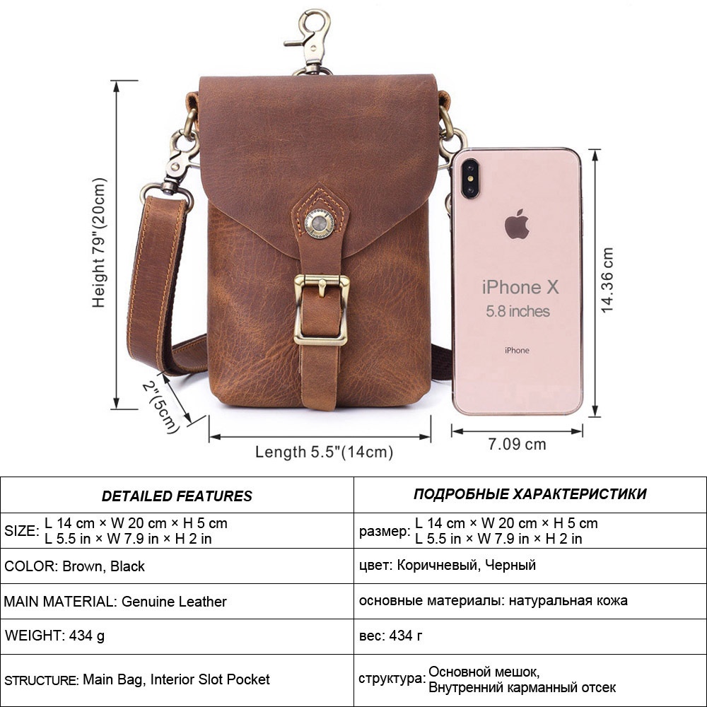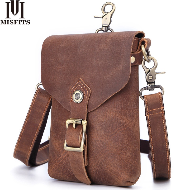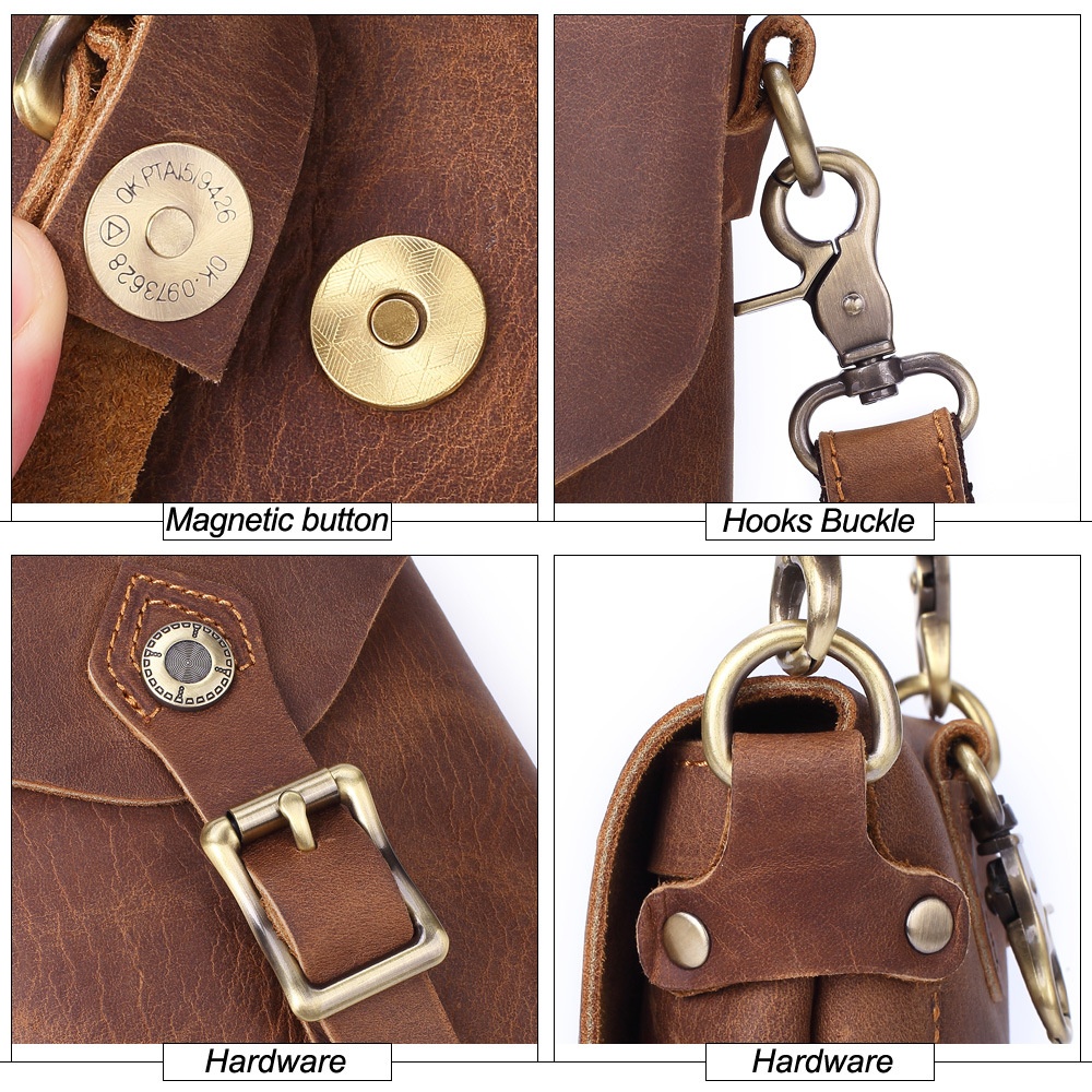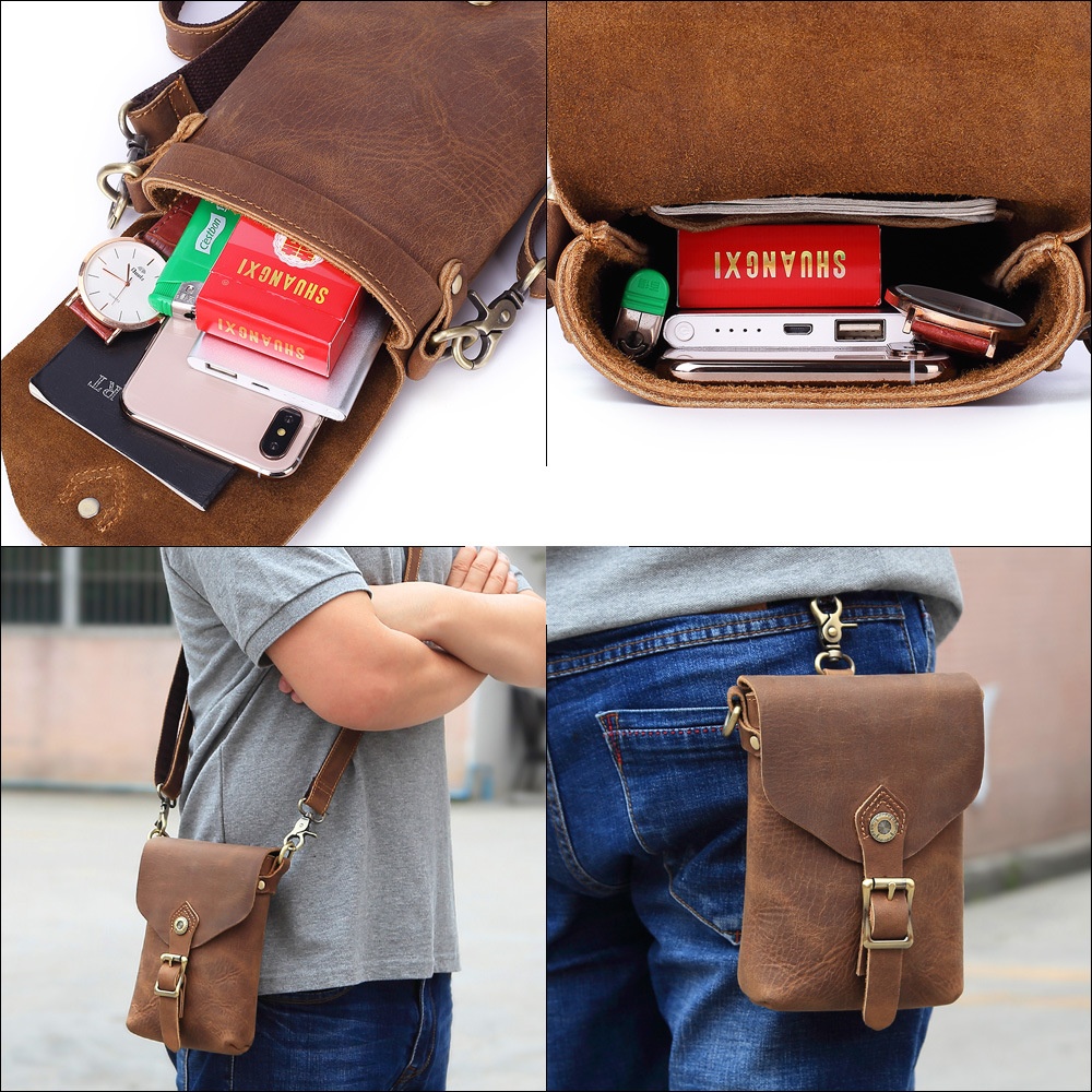 Men's Genuine Leather Shoulder Messenger Bag Multi-kinetic Mobile Phone Coin Purse First Layer Cowhide Retro Casual Waist Bag