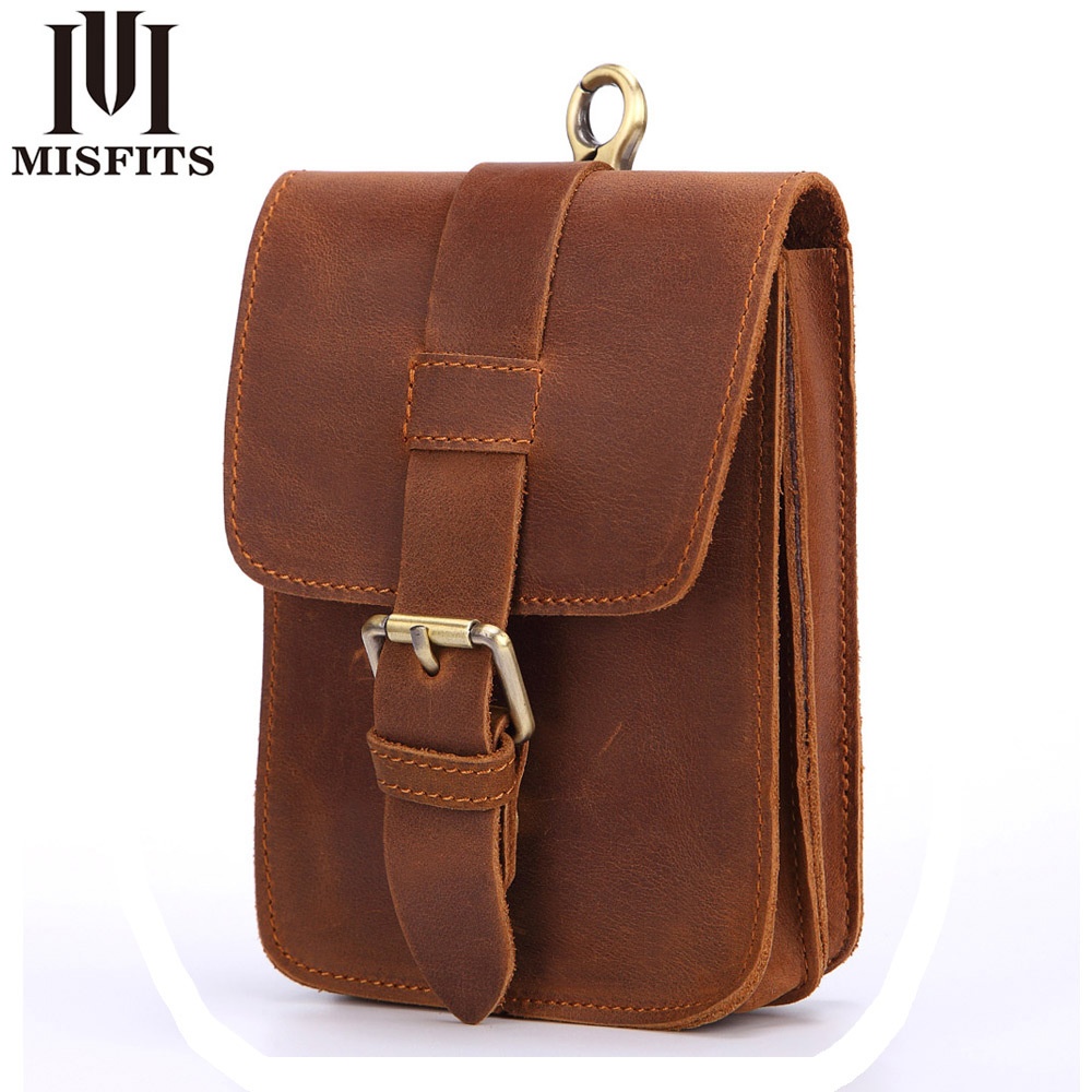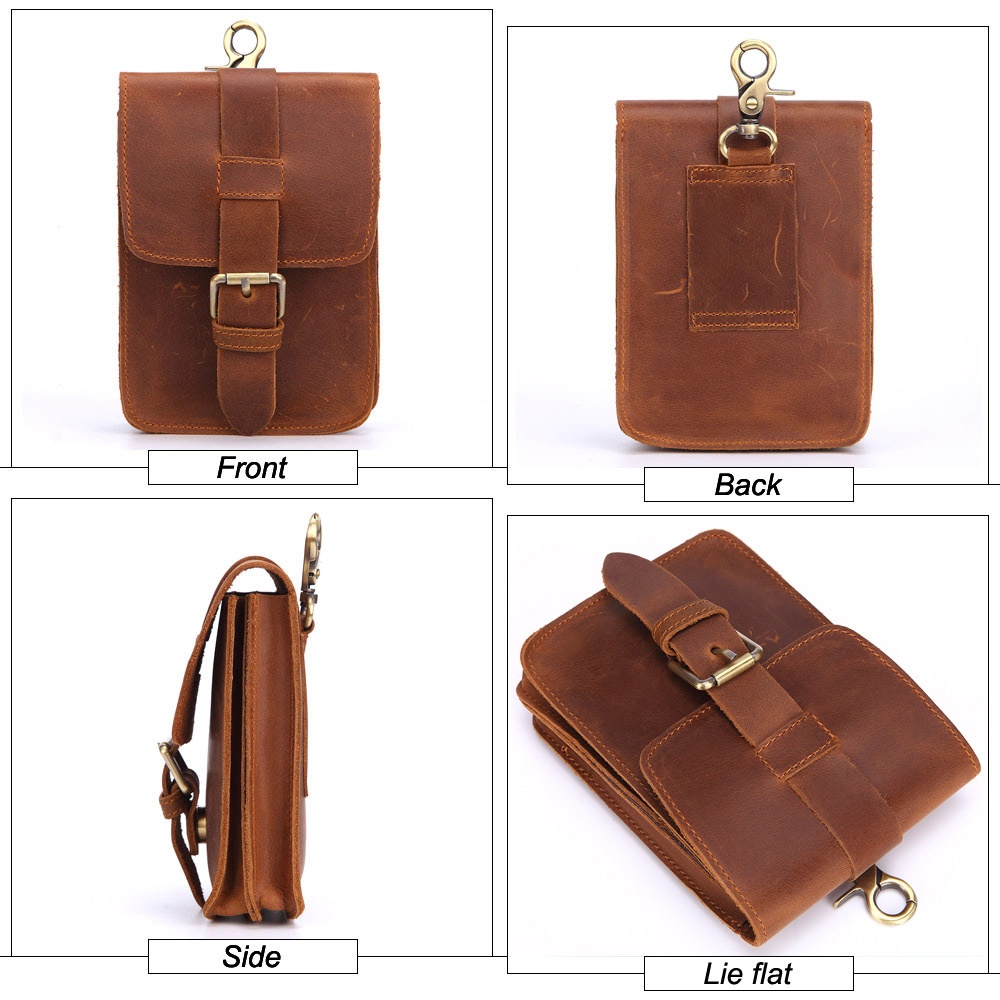 Men's Waist Bag Genuine Leather Mobile Phone Belt Bag First Layer Cowhide Retro Mountaineering Small Bag