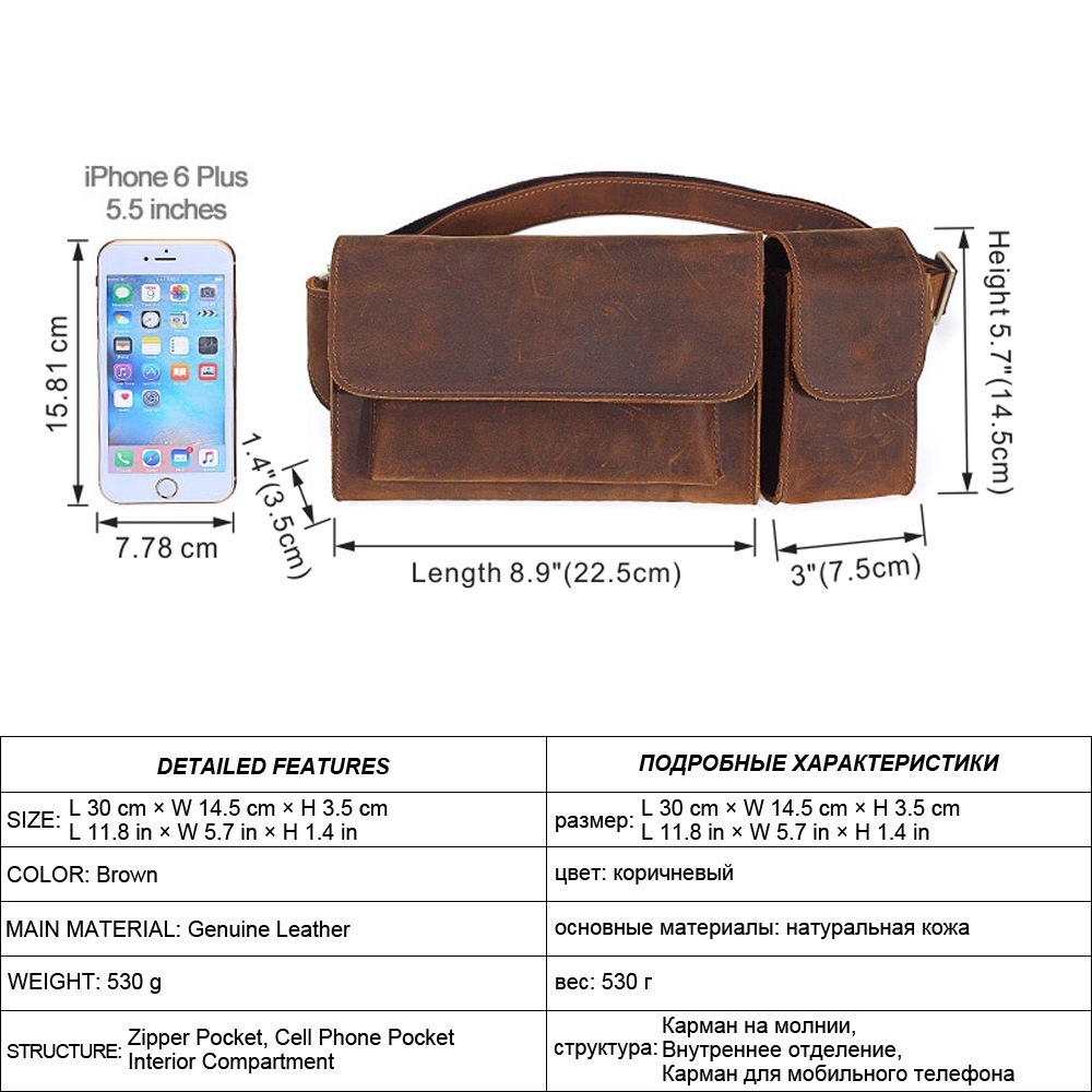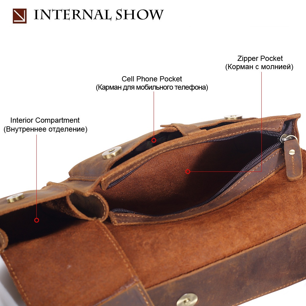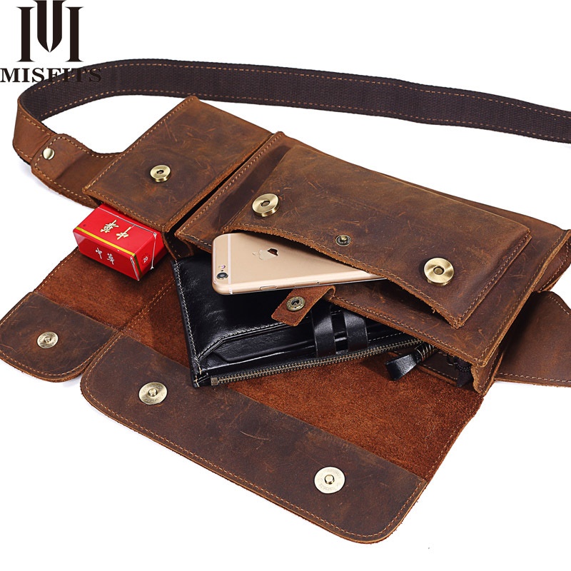 Mingshi Top Layer Cowhide Chest Bag Men's Messenger Bag Genuine Leather Horizontal Shoulder Backpack Men's Crazy Horse Leather Waist Bag