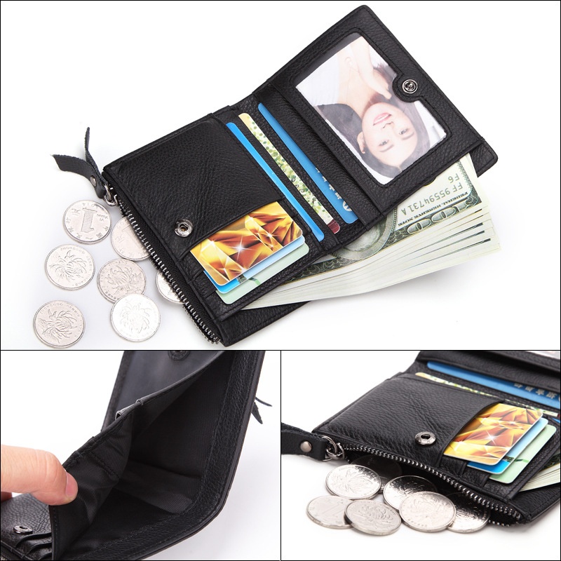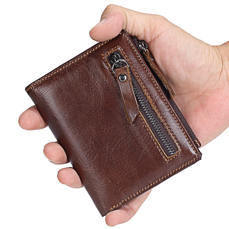 Short Wallet Men's Retro First-layer Leather Wallet Double Zipper Coin Purse Calfskin Vertical Wallet