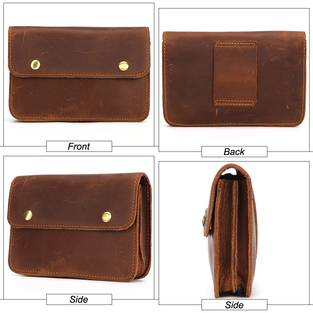 Mobile Phone Waist Bag Double Layer Three Zipper Pocket Cover First Layer Crazy Horse Leather Leisure Multifunctional Belt Bag