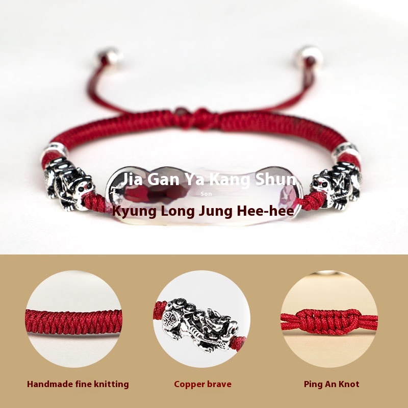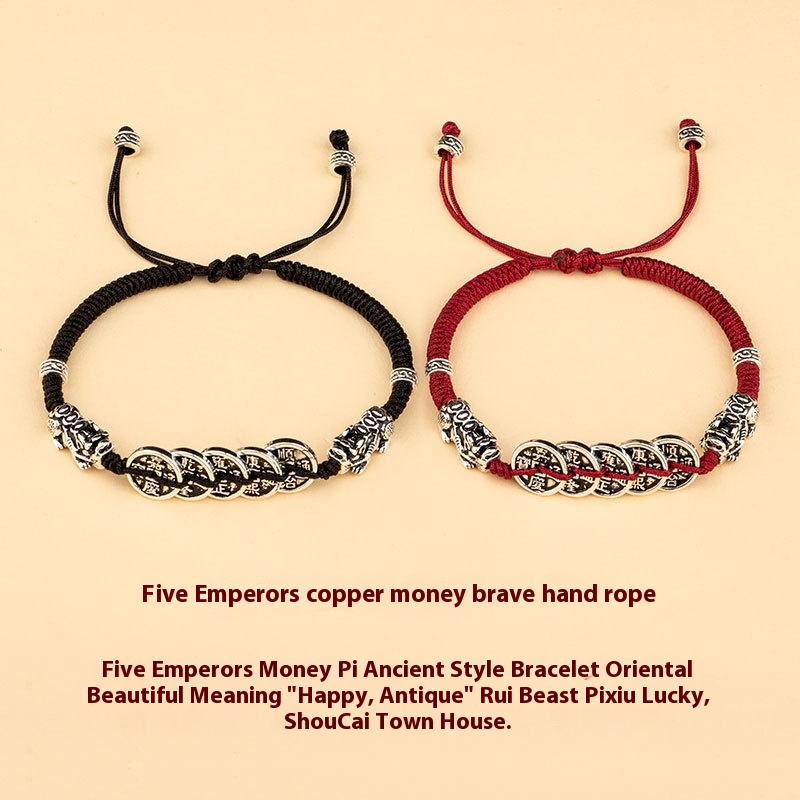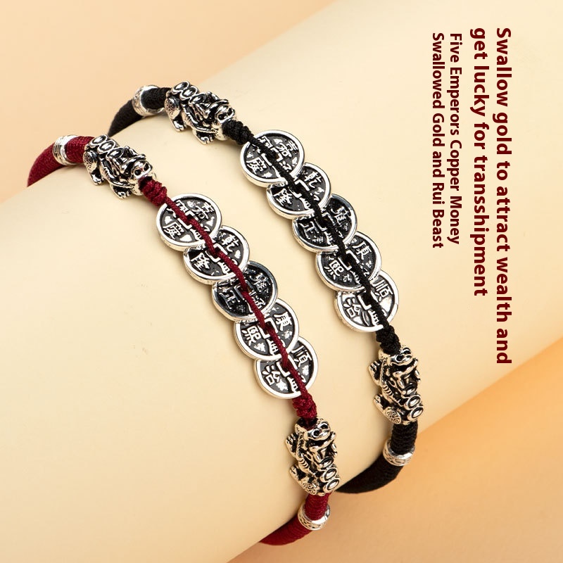 [Five Emperors'Co]Hand-woven Red String Bracelet For Girls,Couple Style,Lucky Pixiu,Chinese Style,National,Retro