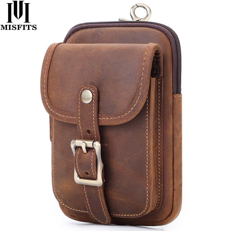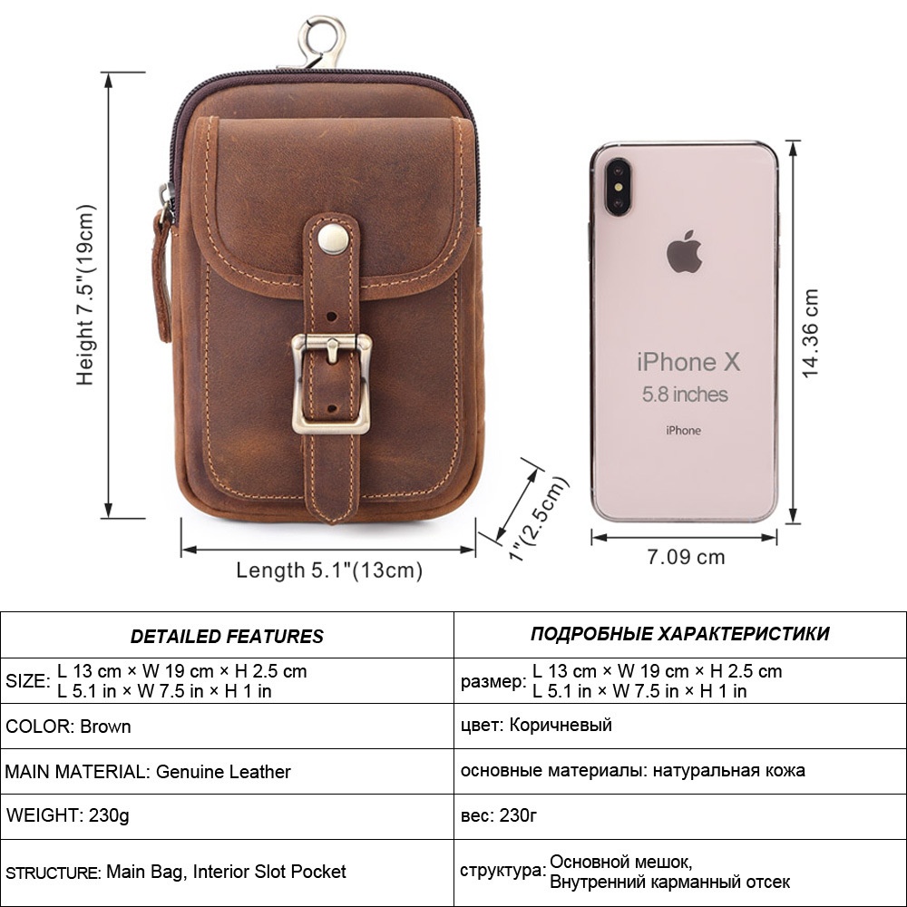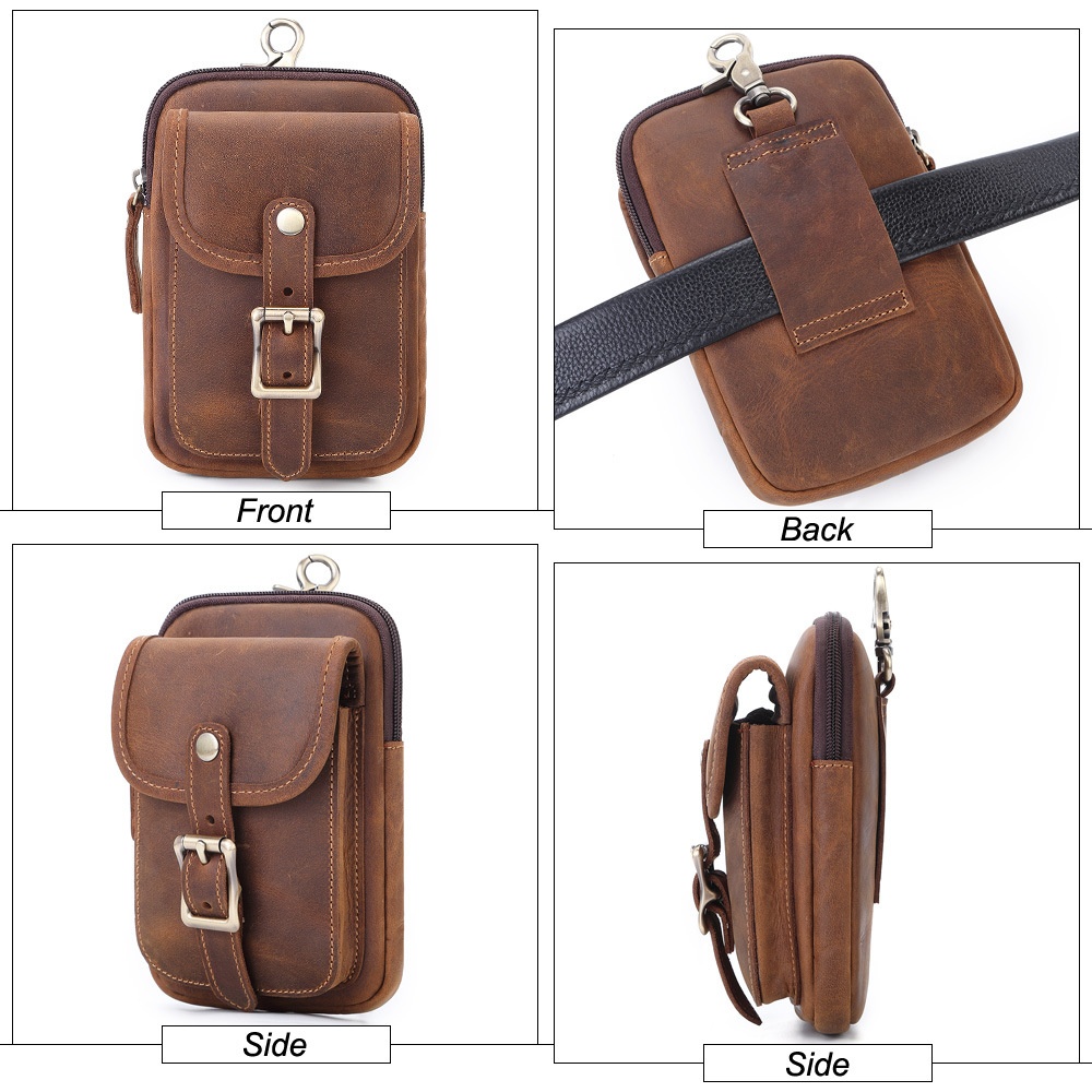Men's Genuine Leather Waist Bag Can Be Worn With ABelt Diagonal Mobile Phone Bag Retro Cowhide Mountaineering Small Hanging Bag