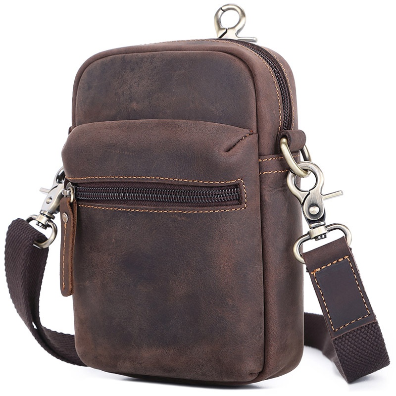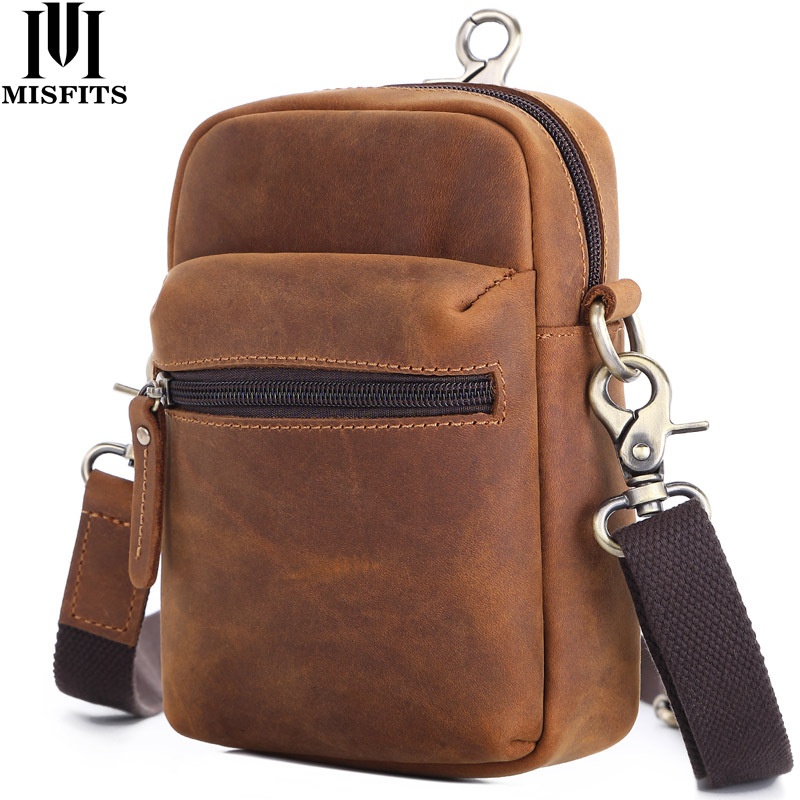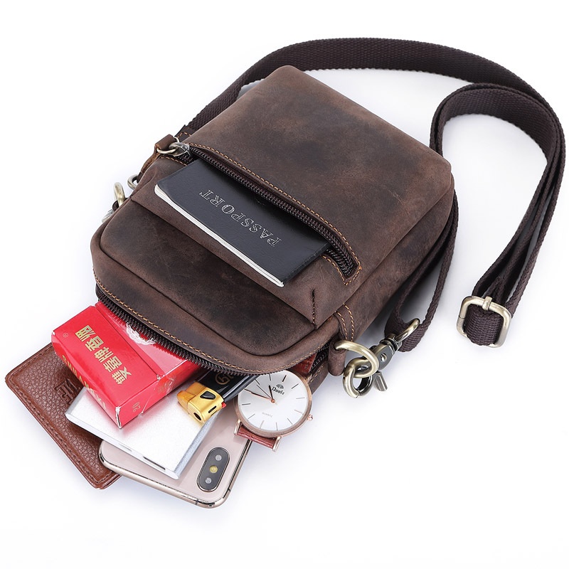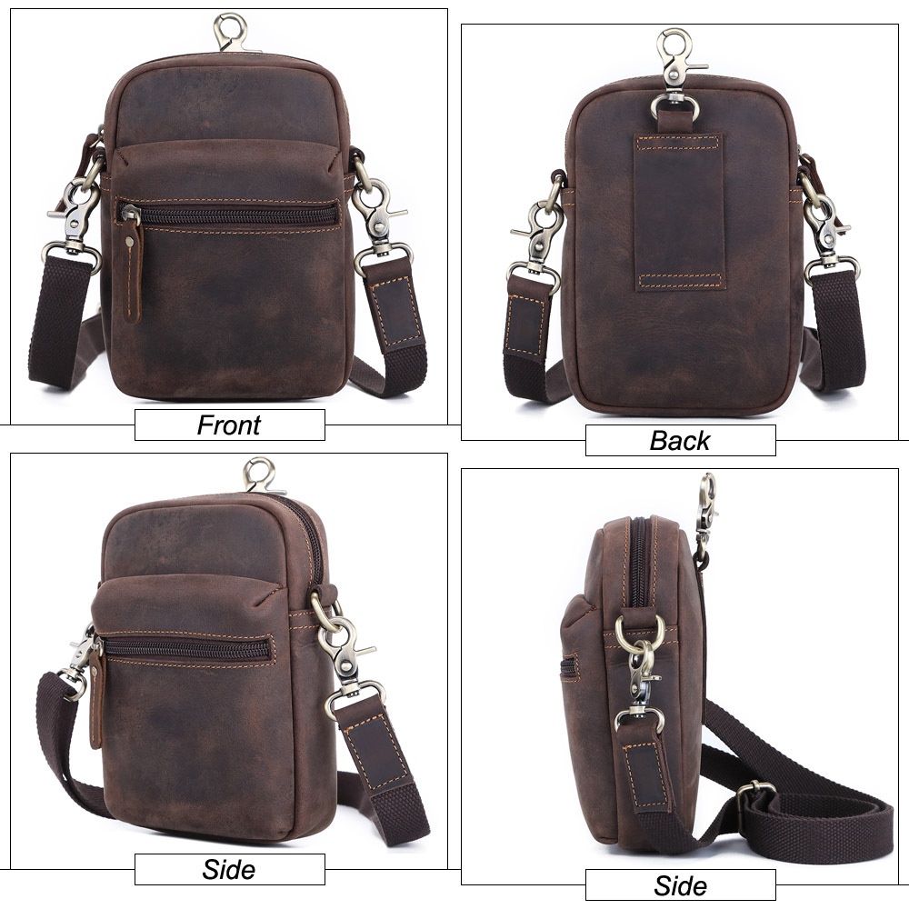 Multifunctional Genuine Leather Men's Shoulder Bag Crossbody Bag Retro Crazy Horse Leather Mobile Phone Waist Bag