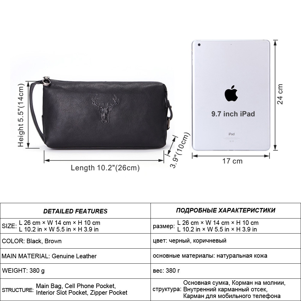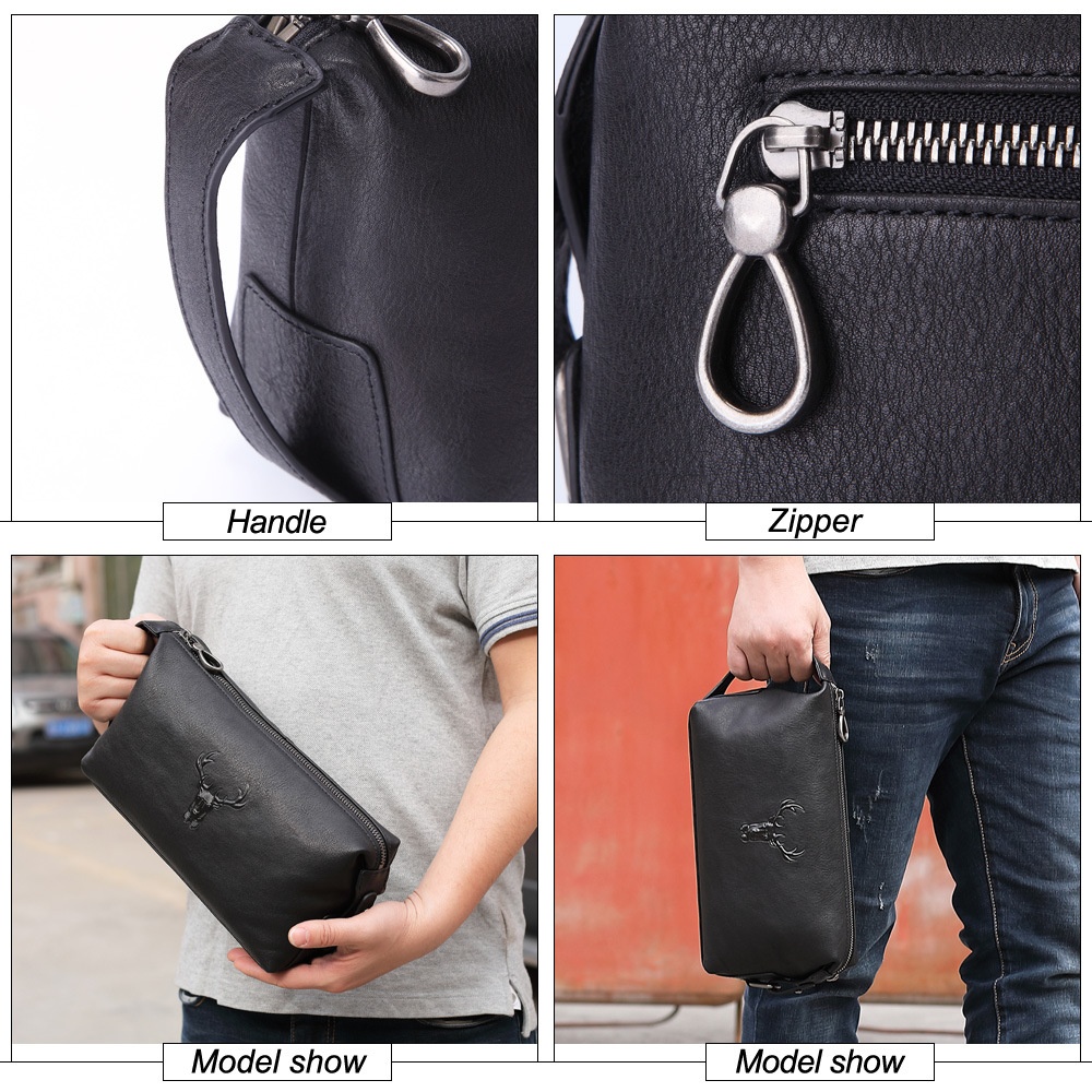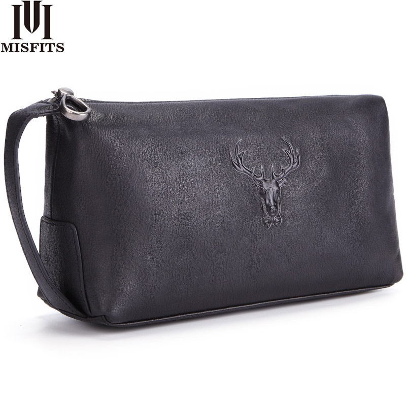 Unisex Genuine Leather Storage Cosmetic Bag Retro Travel Toiletries Bag Deer Head Layer Cowhide Multifunctional Clutch Bag