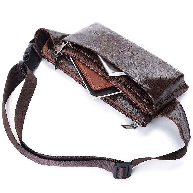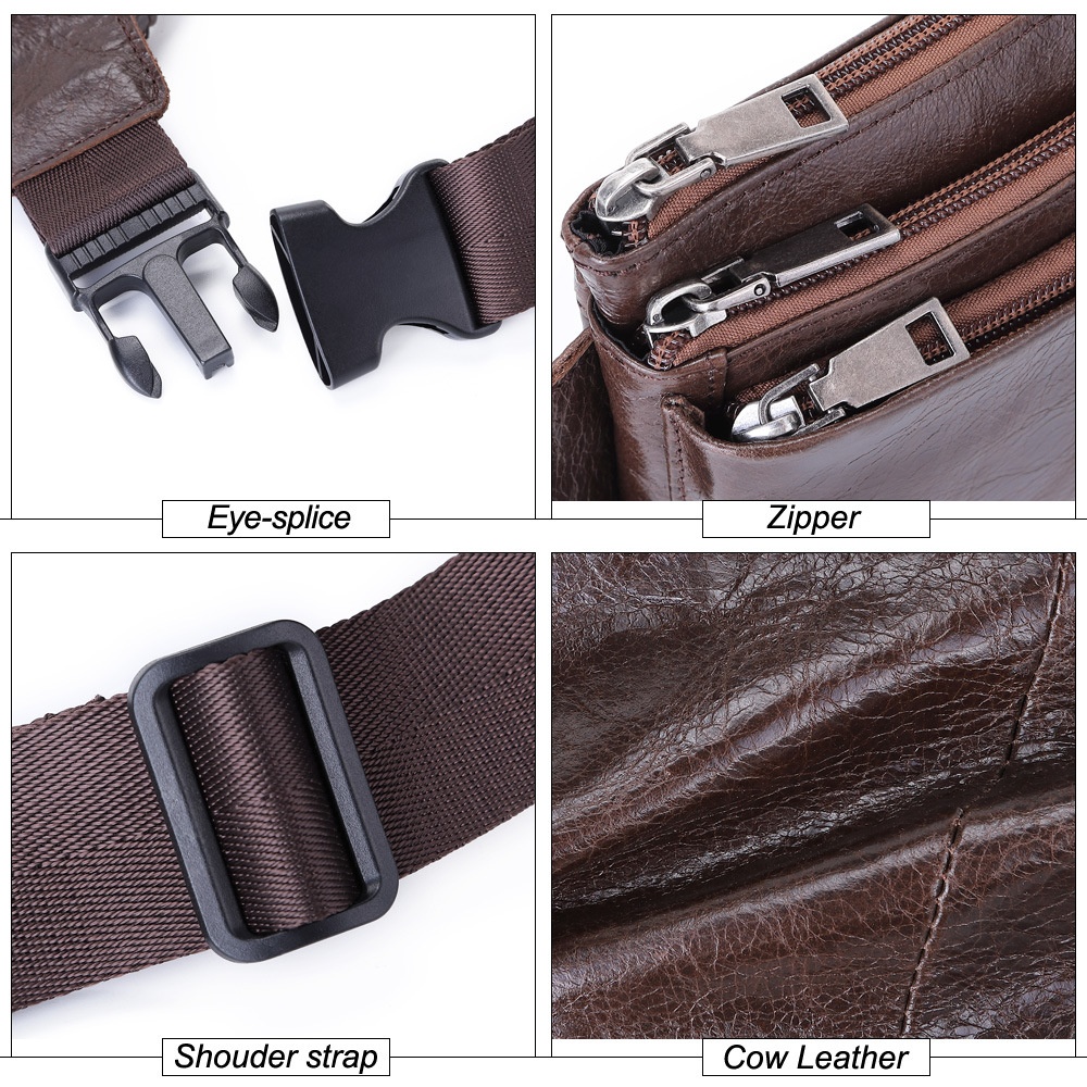 Mingshi Genuine Leather Men's Waist Bag Retro Multifunctional First Layer Cowhide Men's Chest Bag Casual Mountaineering Bag