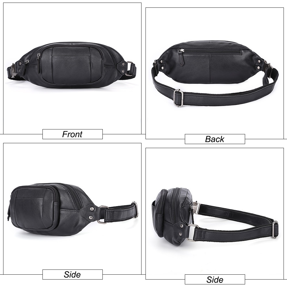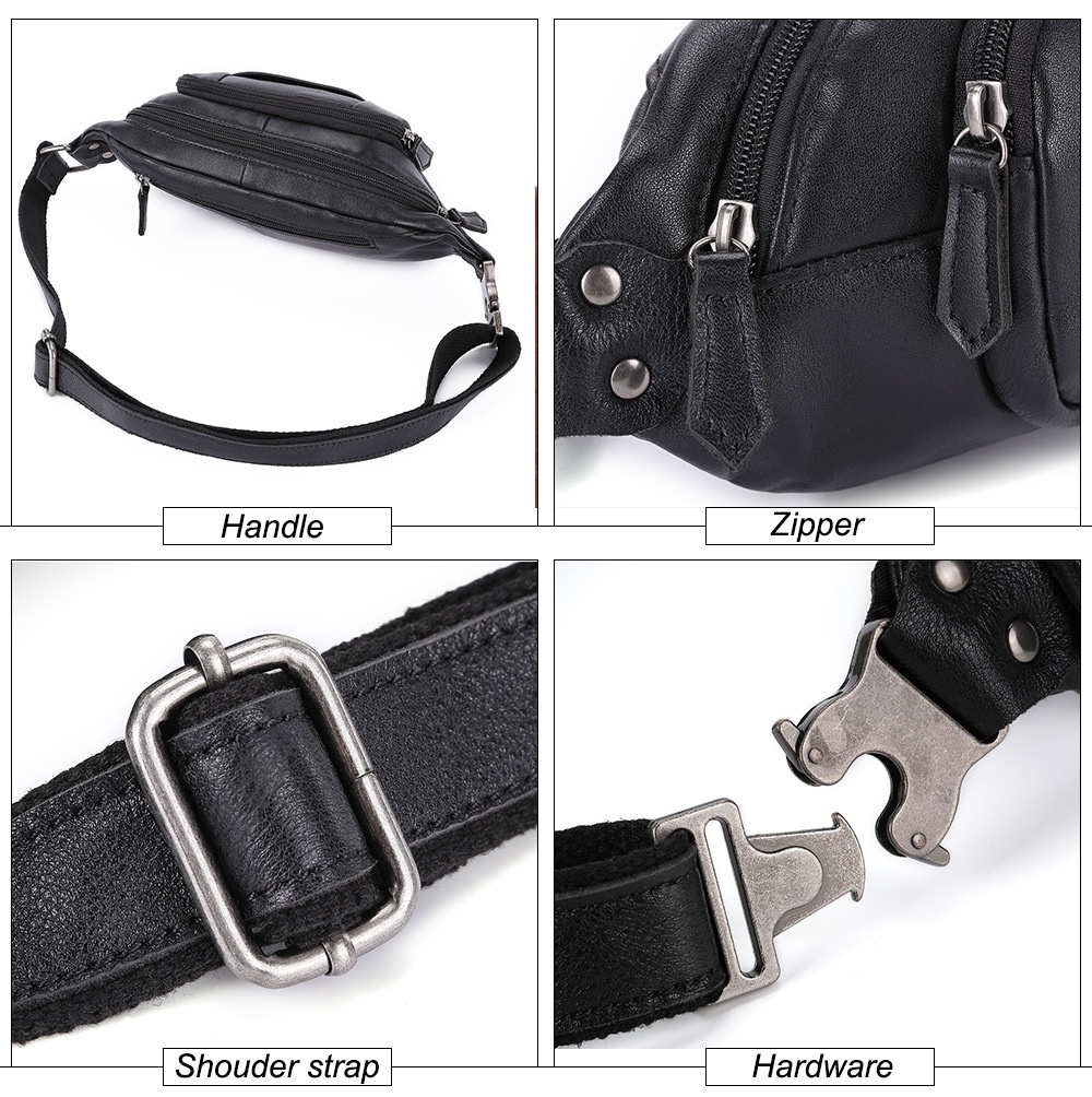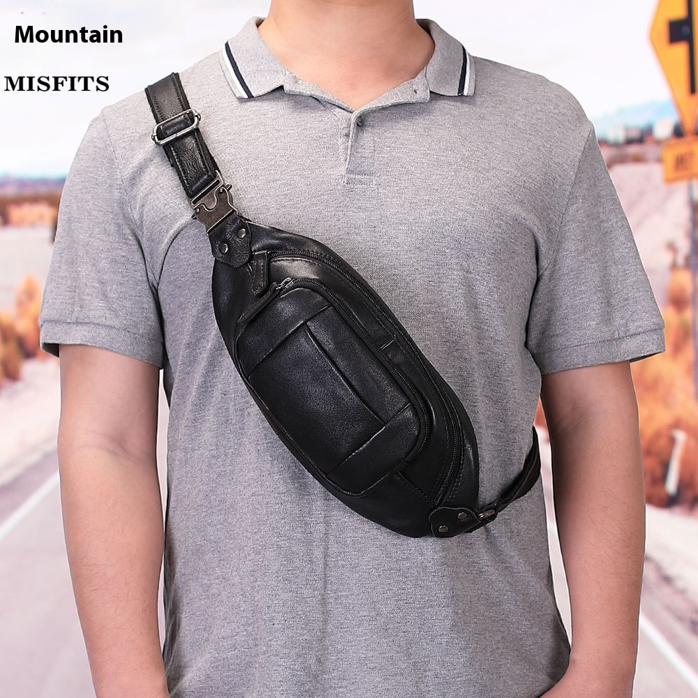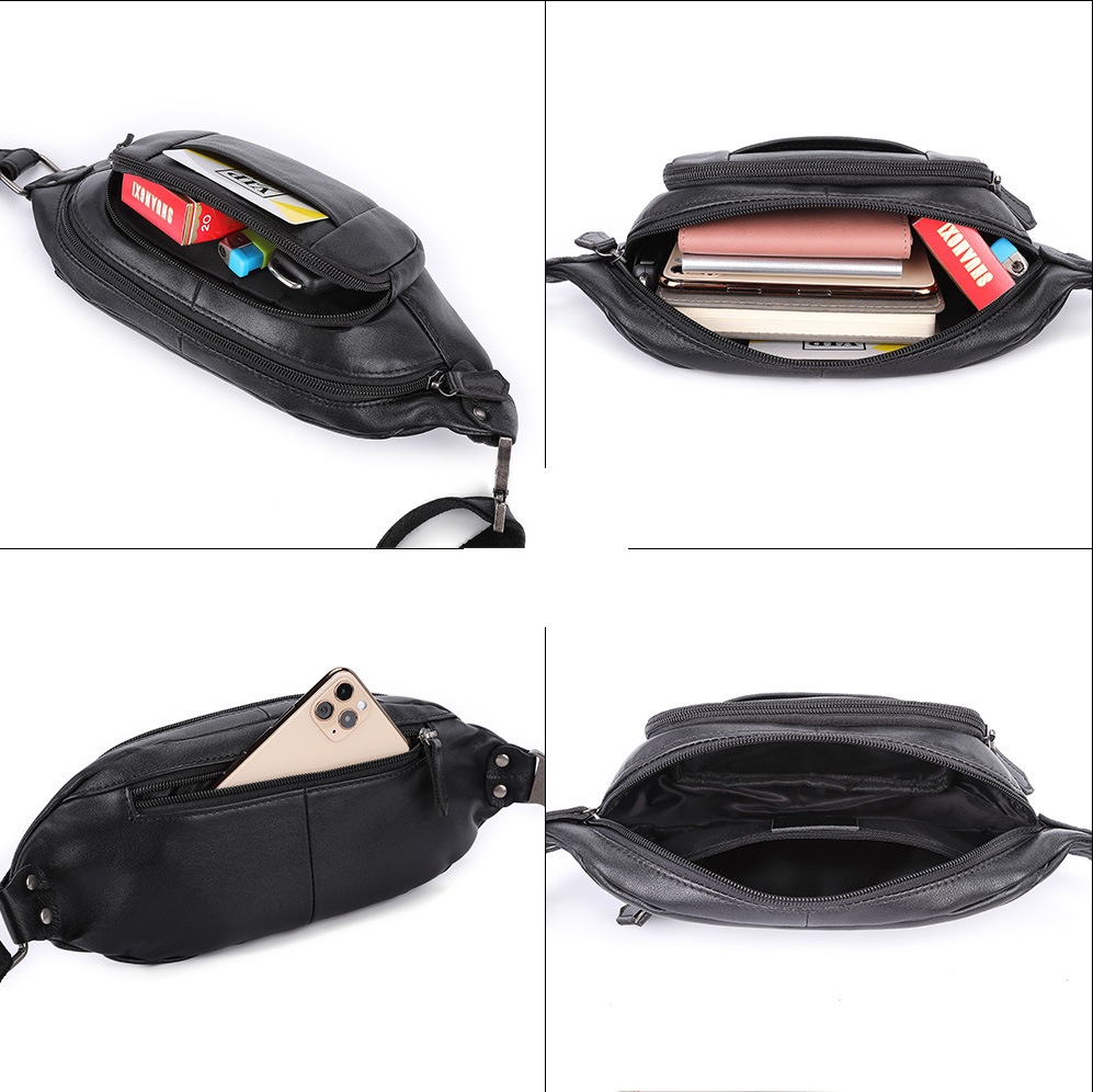 Men's Genuine Leather Chest Bag Men's Sports Waist Bag First Layer Cowhide Multifunctional Shoulder Bag Fashion Messenger Bag