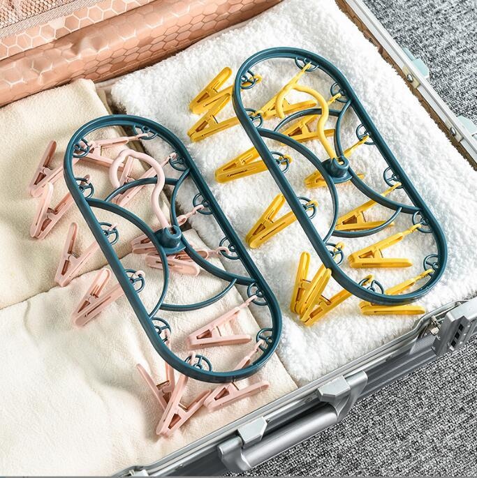 3210 Plastic Drying Rack12 Clips Windproof Multifunctional Dormitory Home Drying Underwear Clothes Rack Student Socks Rack