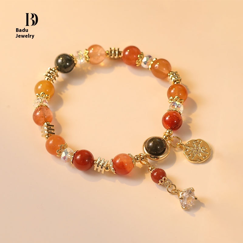 Natural Multi-color Crystal Bracelet For Girls Niche Design Moonstone Eight-pointed Star Multi-treasure Bracelet For Girlfriends
