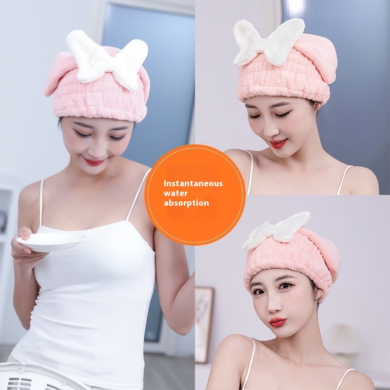 3415 Coral Fleece Bow Dry Hair Cap Shower Cap Absorbs Water And Quickly Dries Women's Fashionable Bath Bun Dry Hair