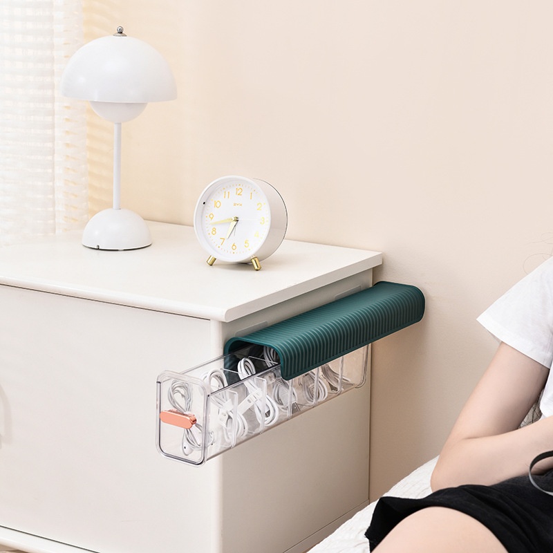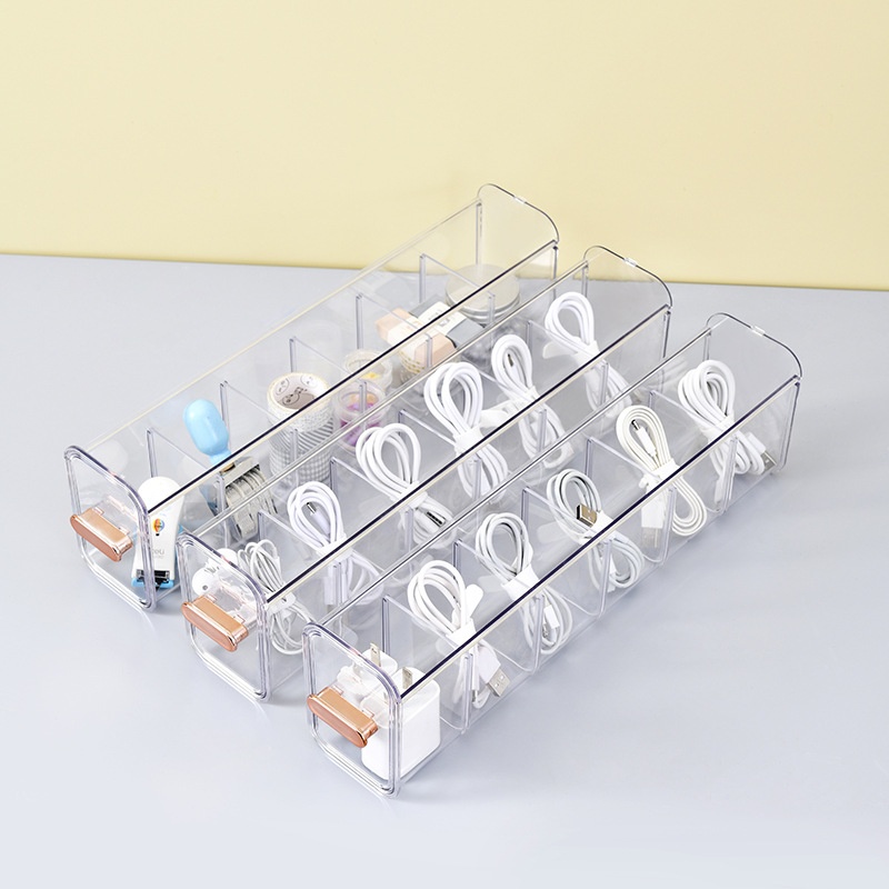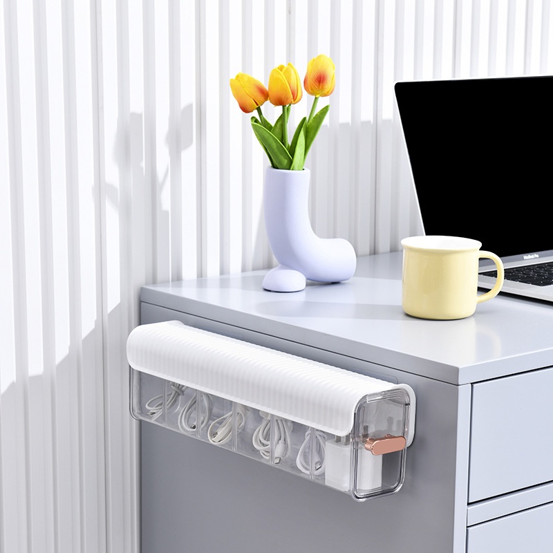 Data Cable Storage Box Mobile Phone Charger Plug Power Charging Cable Storage Box Desktop Partition Double Open Cable Management Box