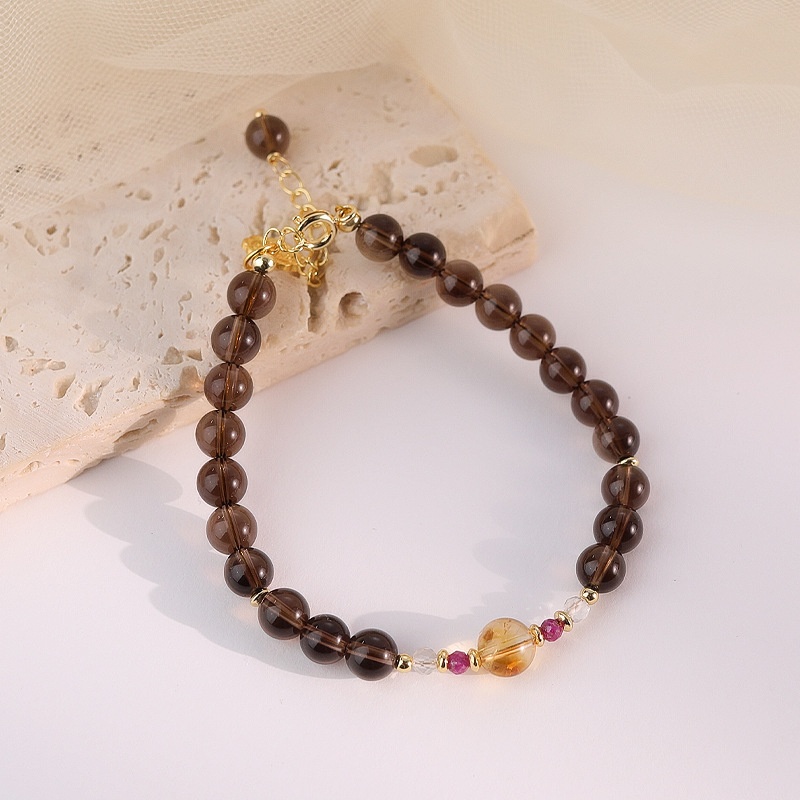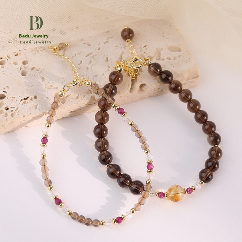 Badu's Product,Smoke Crystal,Yellow Crystal,Pomegranate Bracelet,Niche High-end Original Design,Temperament All-match Jewelry Bracelet