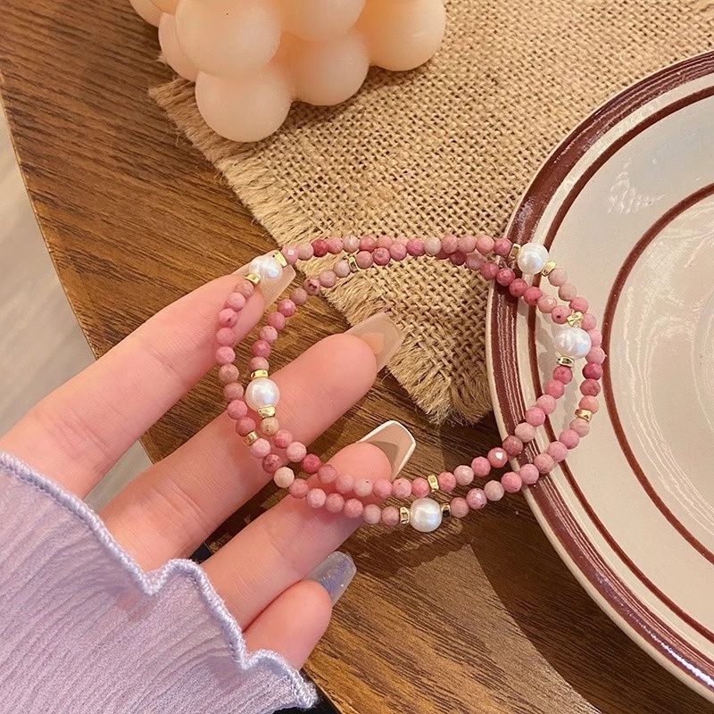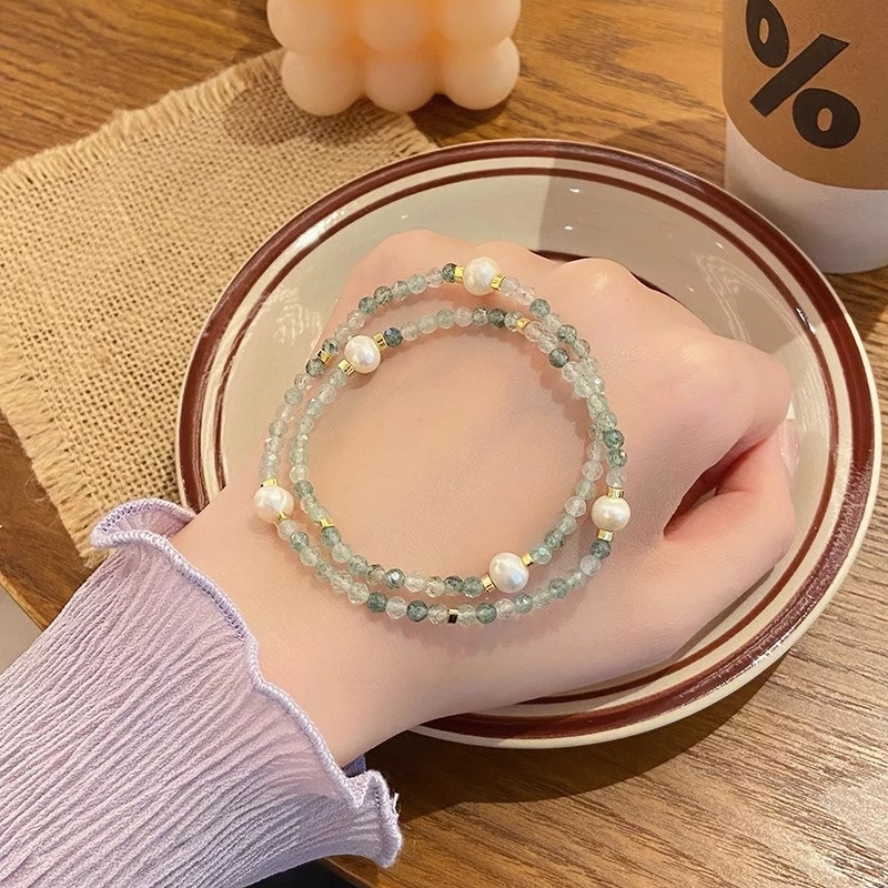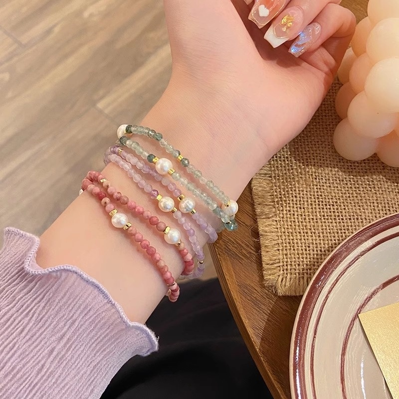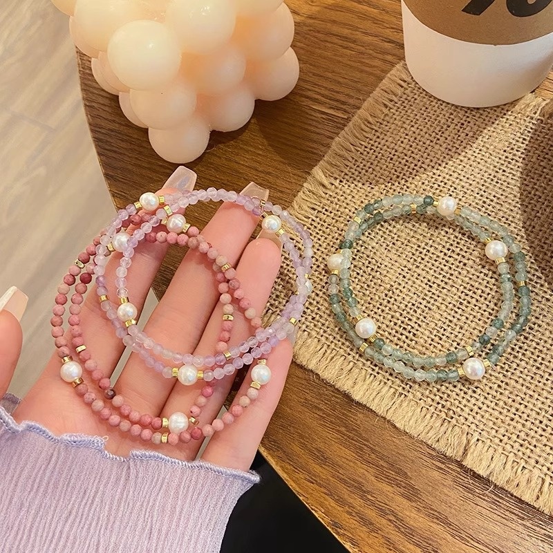 Romantic Beach Cut~Super Fairy Sweet Double Circle Rice Beads Natural Stone Thin Bracelet Amethyst Chinese Style Bracelet