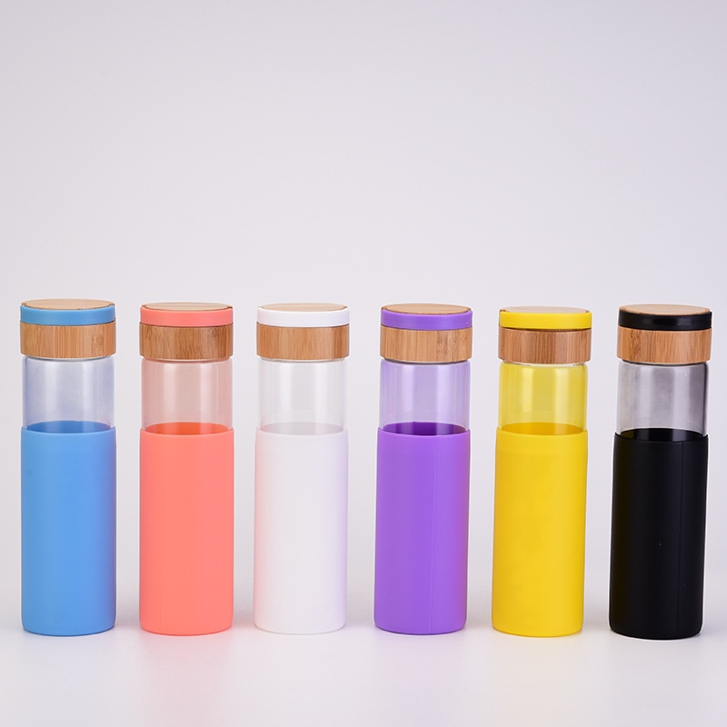 American Anthropologie Glass Water Cup Portable Handle Bamboo Cover Colorful Silicone Sleeve Outdoor Water Cup