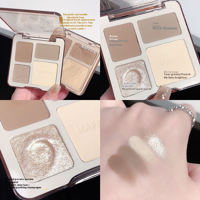 MAFFICKFour-color Contouring Palette,Highlight Contouring Integrated Palette,Matte Brightening Glitter Highlight Eyeshadow Contouring Palette