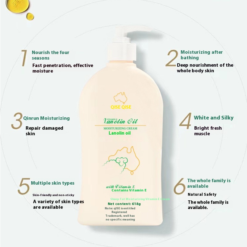 QISEQise618ml Large Capacity Lanolin Moisturizing Vitamin ECream Moisturizing Regulating Water Oil Lanolin Oil