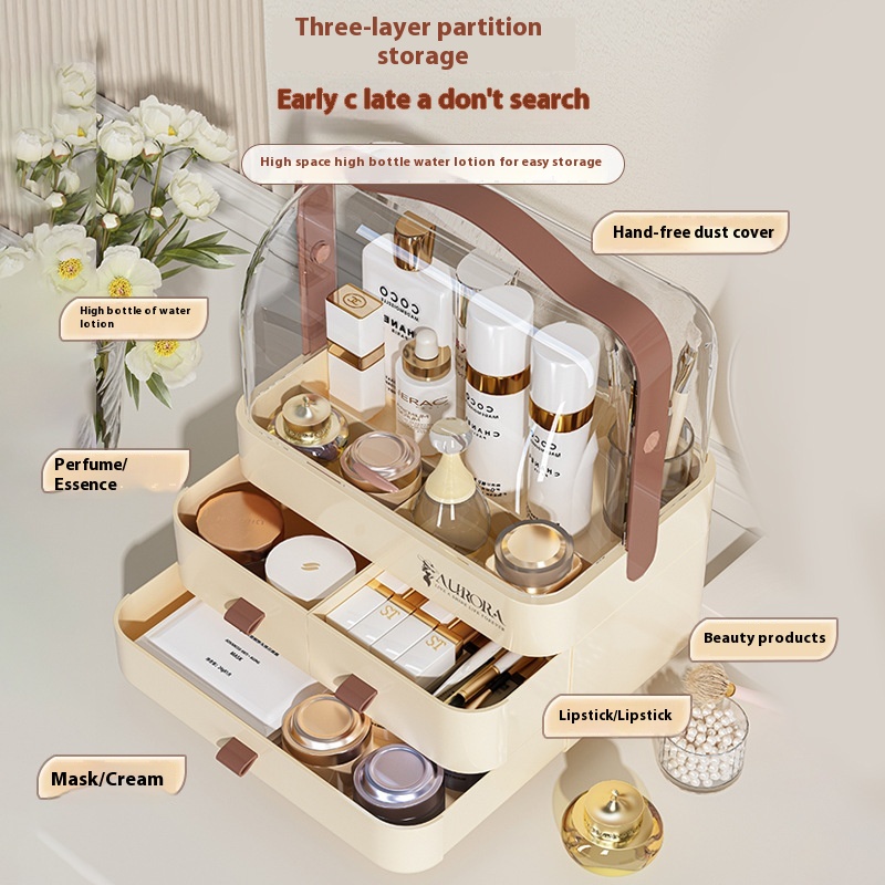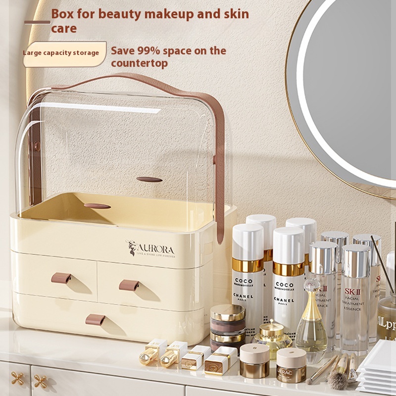 High-grade Cosmetics Storage Box Dust-proof Dressing Table Lipstick Skin Care Products Storage Box Dormitory Desktop Storage Shelf