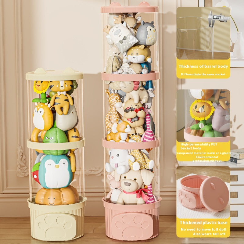 Doll Storage Tube Plush Toy Storage Artifact Children's Doll Storage Bucket Doll Transparent Storage Basket Storage Box